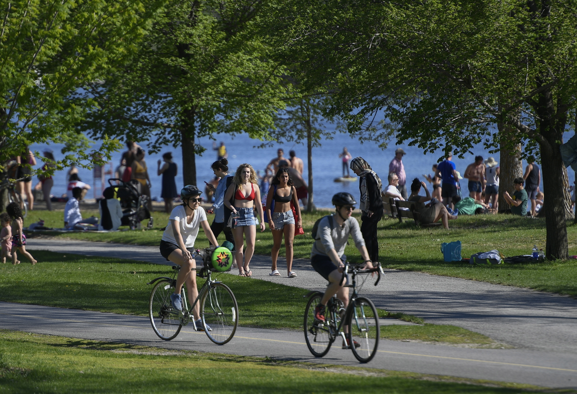 Bilde av syklister ved innsjø