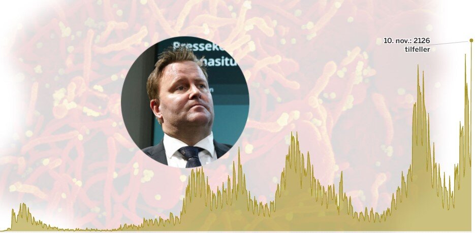 Tallet på registrerte smittede det siste døgnet er 2126, det høyeste tallet siden pandemiens start.