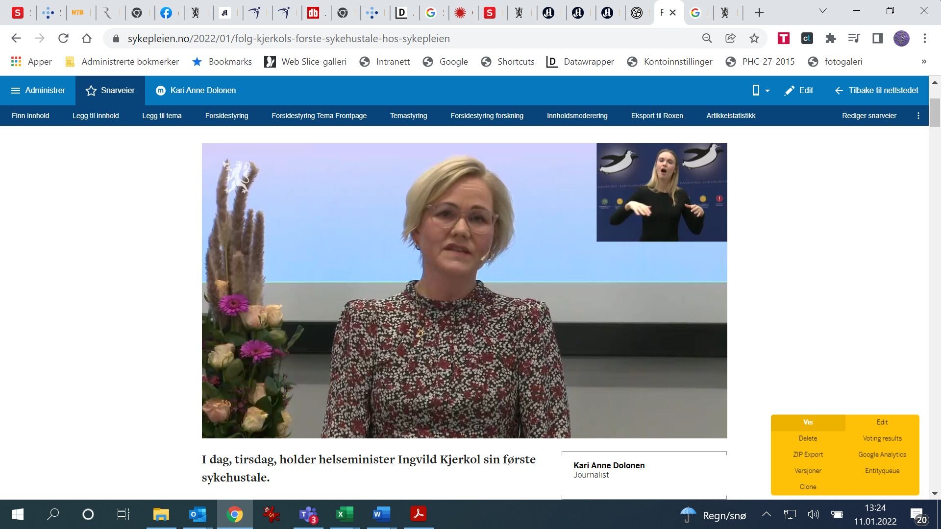 I dag holdt helseministeren sin aller første sykehustale. Hun vil styrke grunnbemanningen i kommunehelsetjenesten og ved sykehusene, og lovte bort 1,5 milliarder kroner til ekstra kostnader og gode lokale løsninger. Og 200 ekstra utdanningsstillinger for spesialsykepleiere.