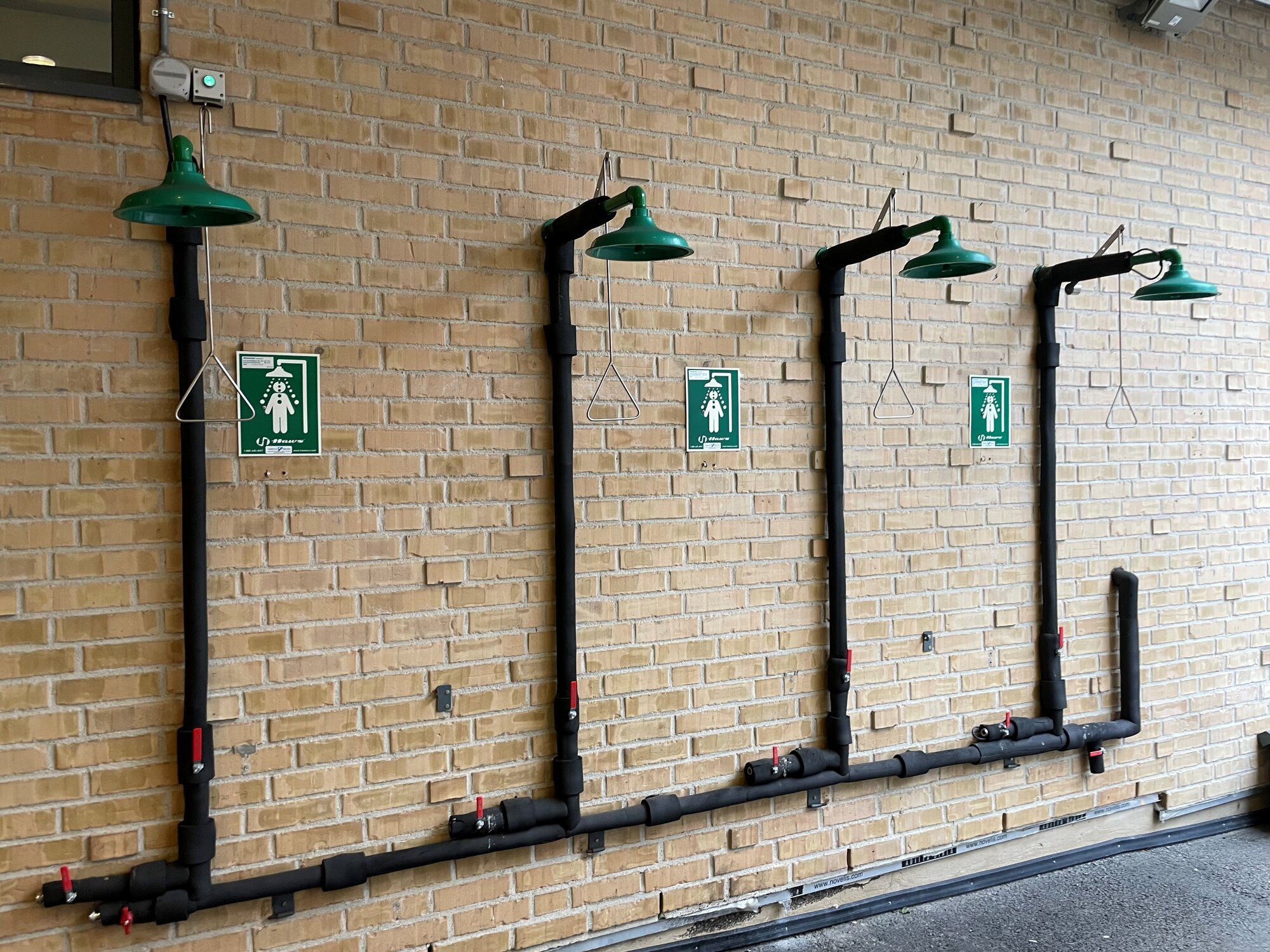 Bildene under ble tatt av senterets egen fotograf i fjor. De er fra øvelser med kjemikalier, men disse har omtrent samme fremgangsmåte som biologiske eller radiologiske hendelser.