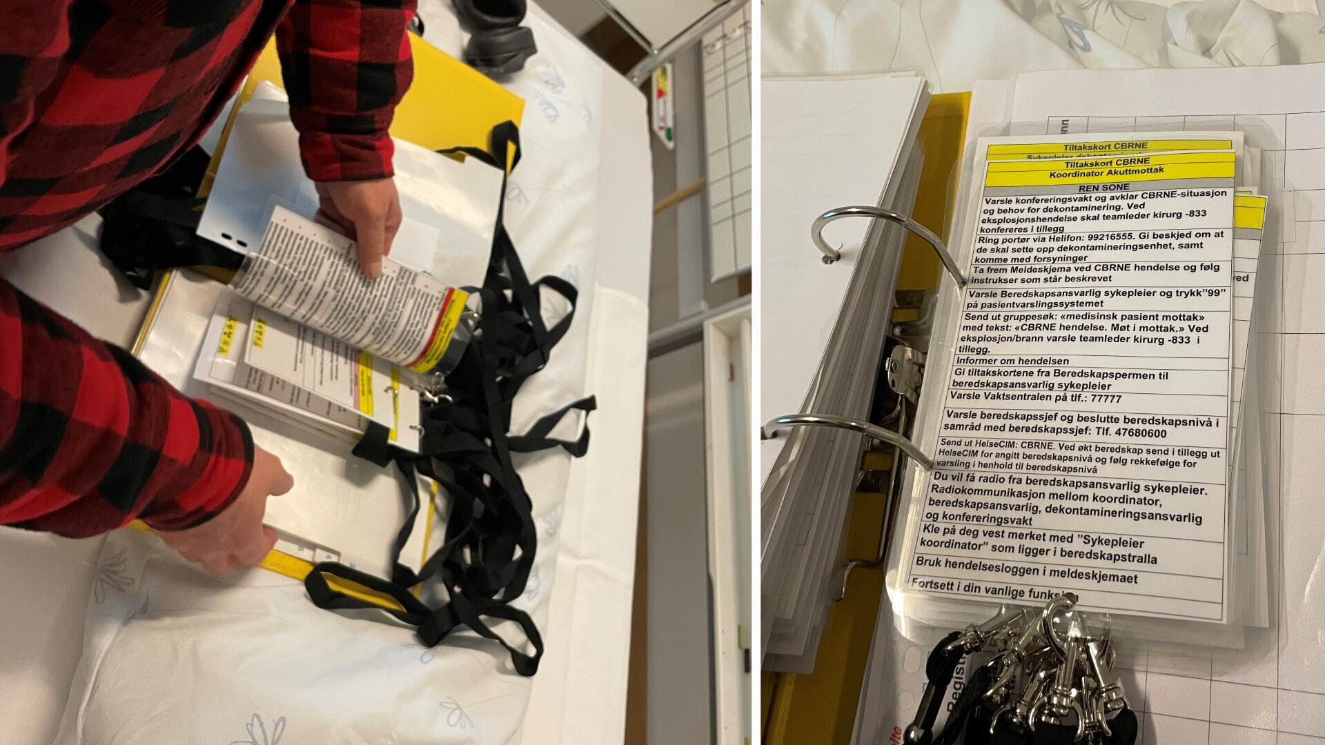 I akuttmottakene fins det tiltakskort, som er utarbeidet av sykehuset i samarbeid med CBRNE-senteret. Kortene viser hva hver enkelt ansatt, fra lege til sykepleier, skal jobbe med i krisesituasjoner, forteller han.
