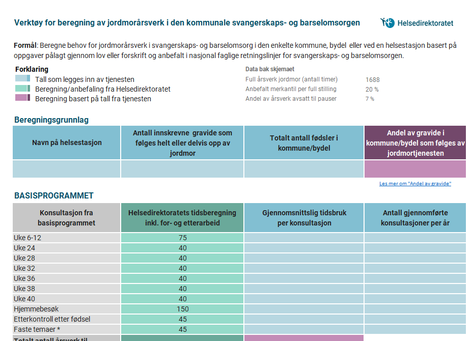 – Målet med verktøyet er å gjøre det lettere for ledere i tjenesten å planlegge hvor mange jordmødre og kontorfaglige ansatte som trengs på helsestasjonen hver dag for å ivareta oppgavene som er pålagt gjennom lov og forskrift, Nasjonal faglig retningslinje for svangerskapsomsorg og barselomsorg samt andre oppgaver, sier hun.