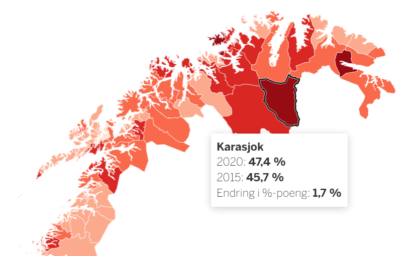 I kommuner som Åseral, Hattfjelldal, Aure og Smøla ble andelen mer enn doblet fra 2015 til 2020.