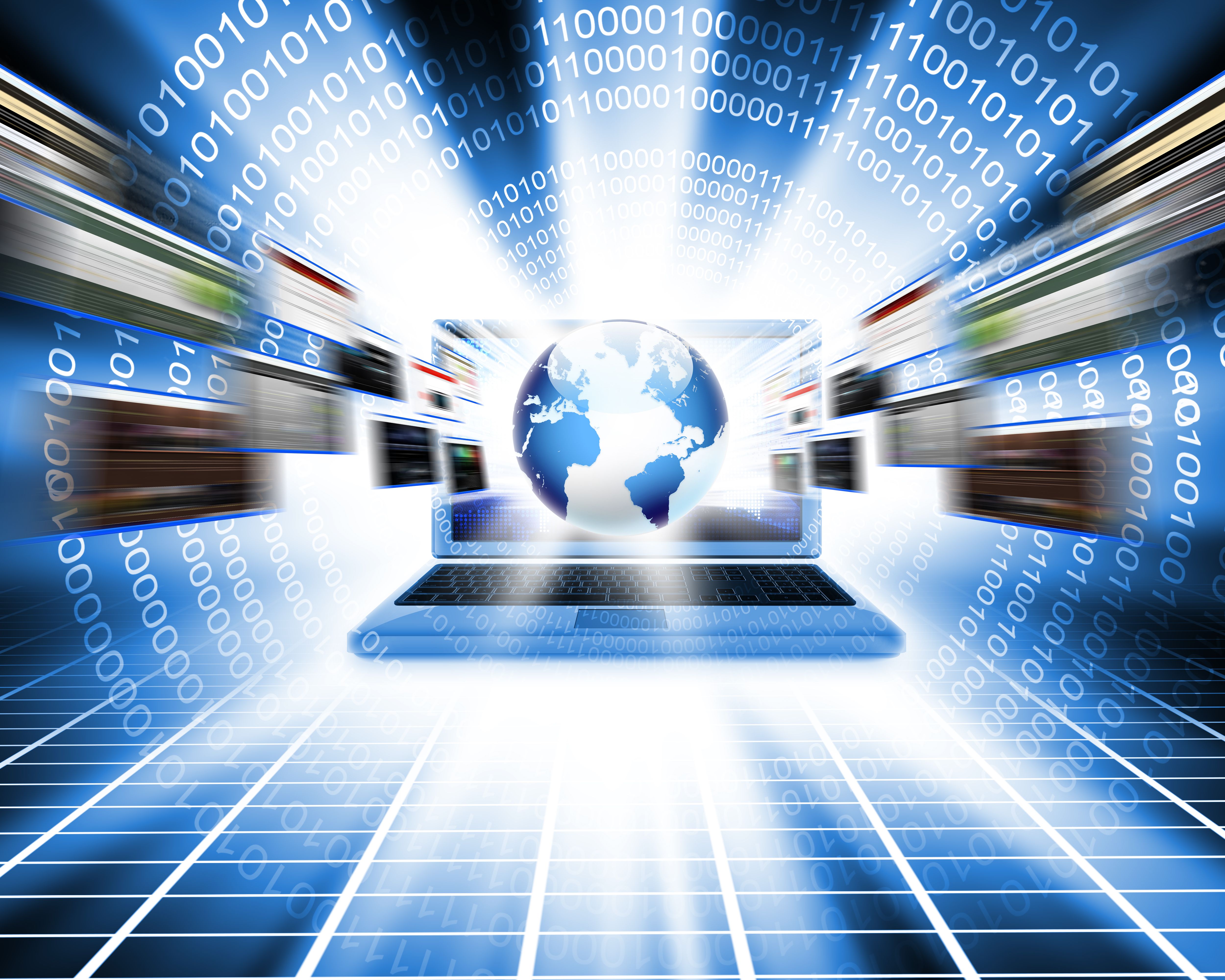 Illustrasjon av pc-teknologi med jordklode i bakgrunnen