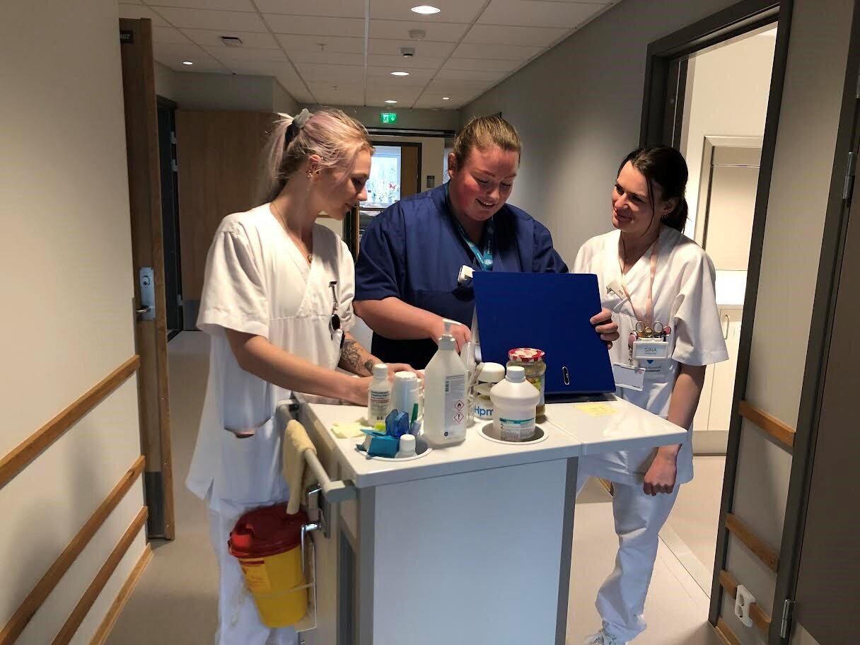 En sykepleiers hverdag kan være hektisk. Spesielt i helgene når det er færre på jobb. De ferske sykepleierne kan trenge hjelp eller noen å snakke med til enhver tid.
