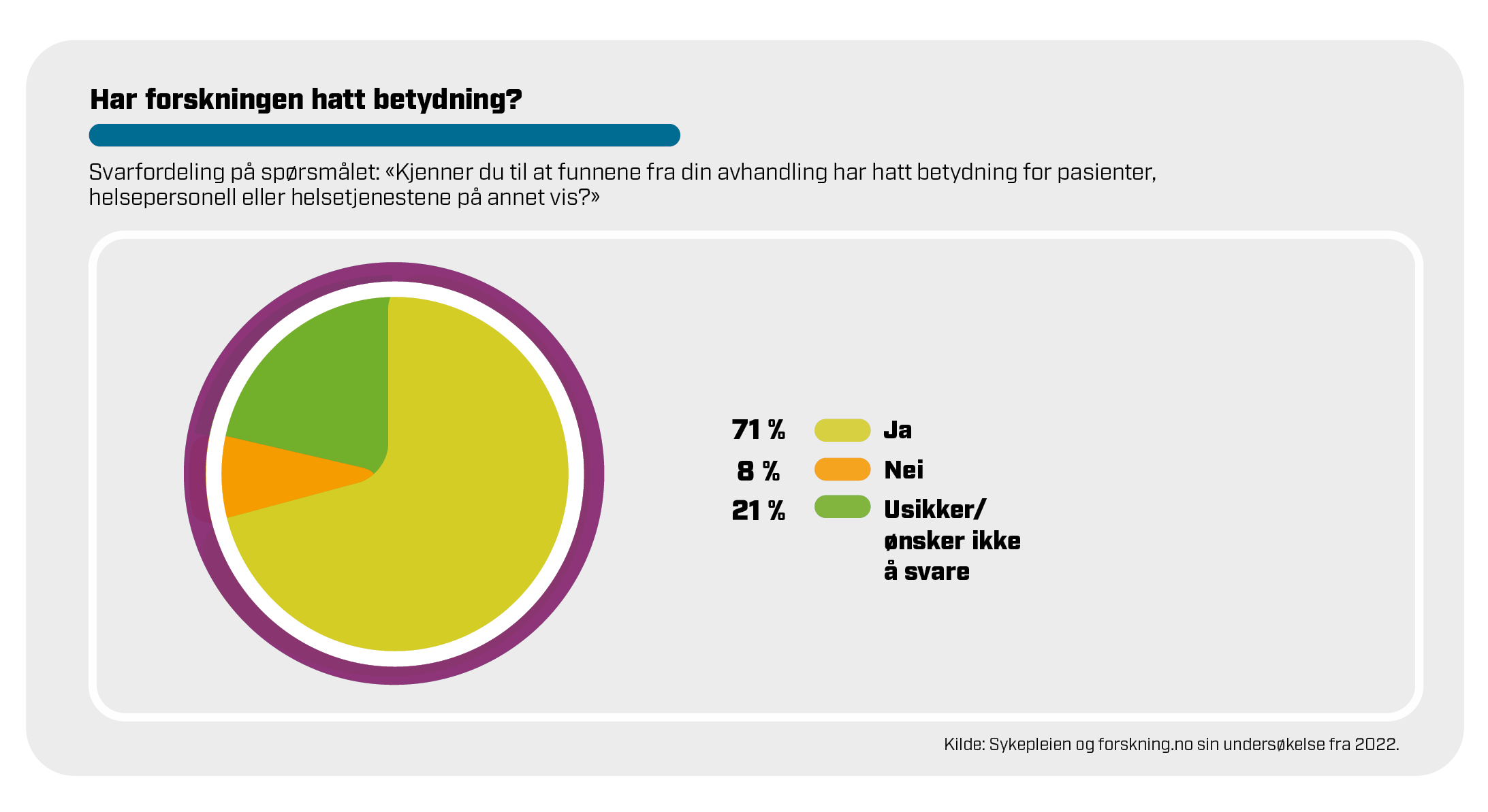 De fleste som har svart på undersøkelsen, rundt 7 av 10, mener at funnene fra deres doktorgradsavhandlinger har hatt betydning for pasienter, helsepersonell eller helsetjenestene på annet vis.