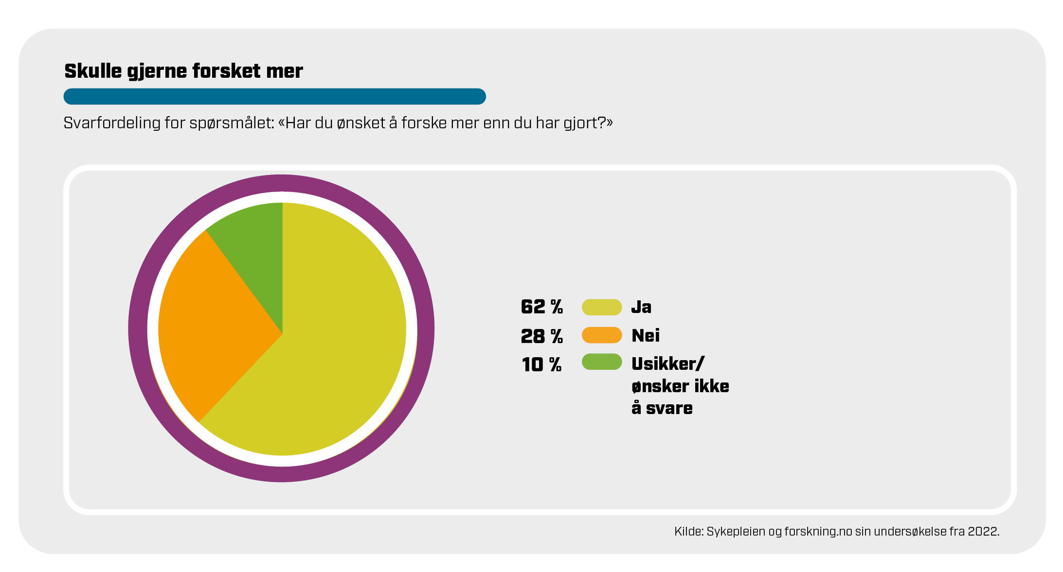 6 av 10 sykepleiere med doktorgrad oppgir at de gjerne skulle ha forsket mer enn de har gjort.