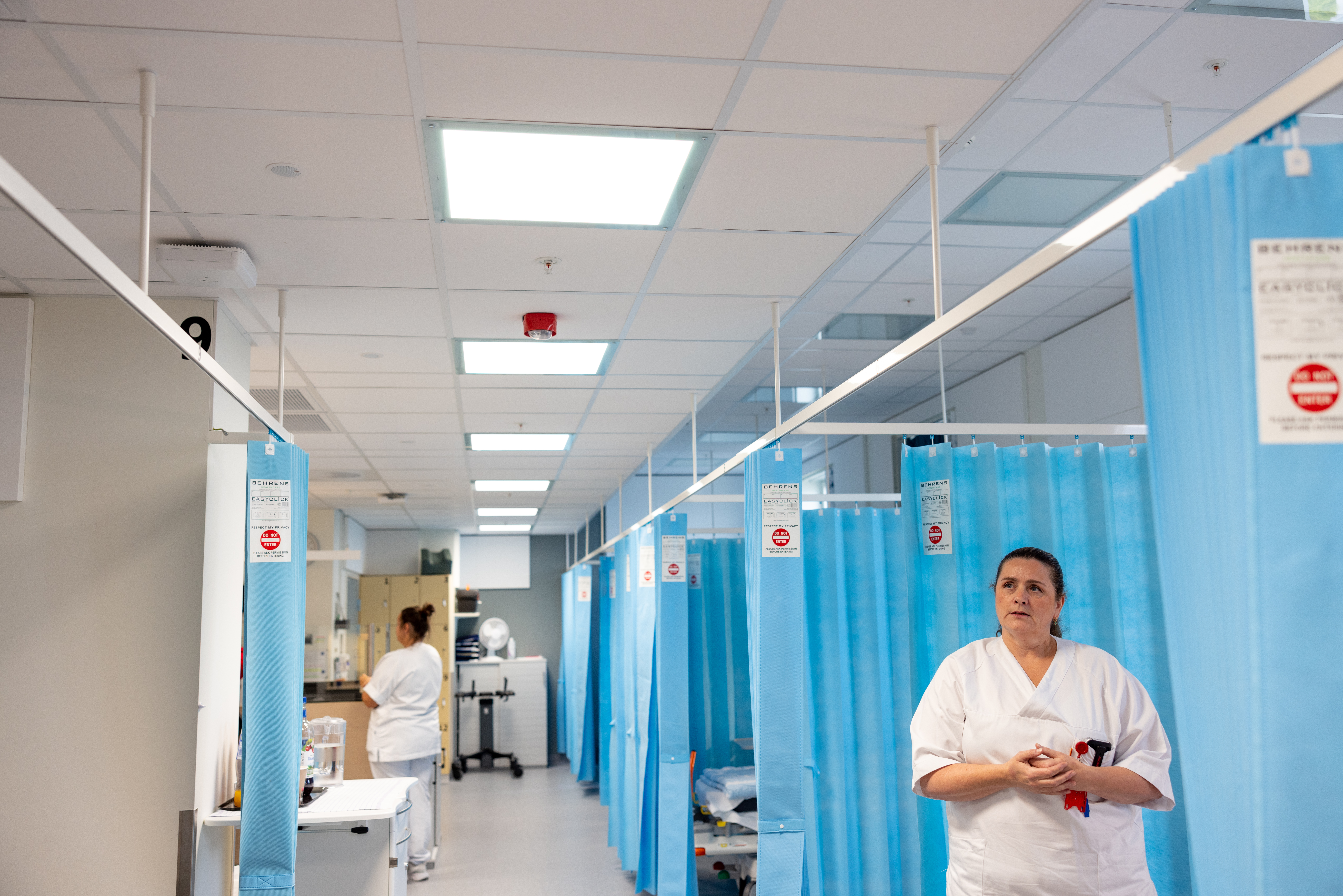 Sengene er kun atskilt med tynne engangsgardiner.