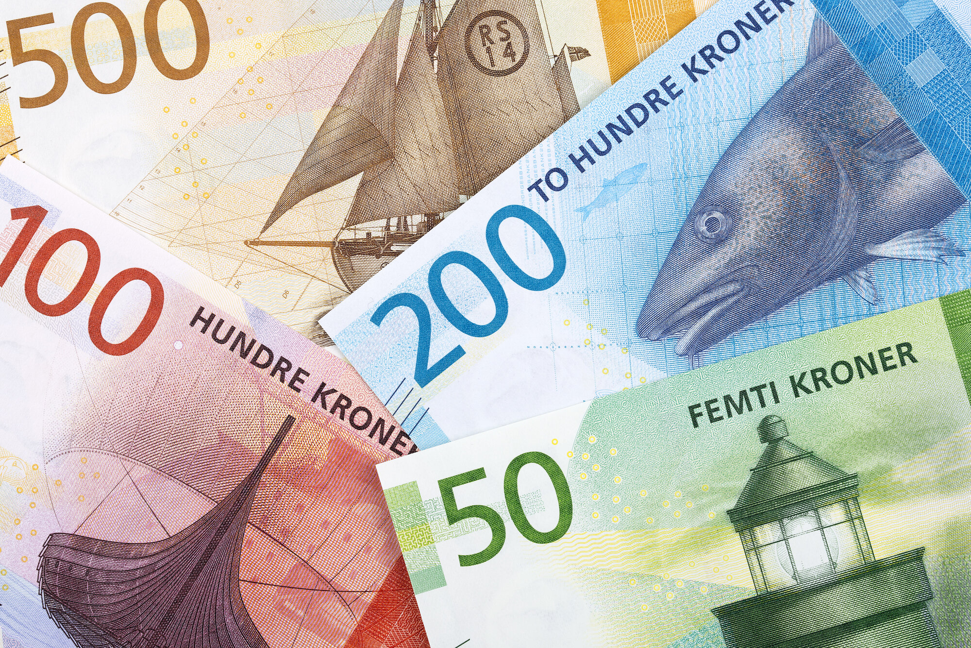 Bildet viser norske pengesedler.