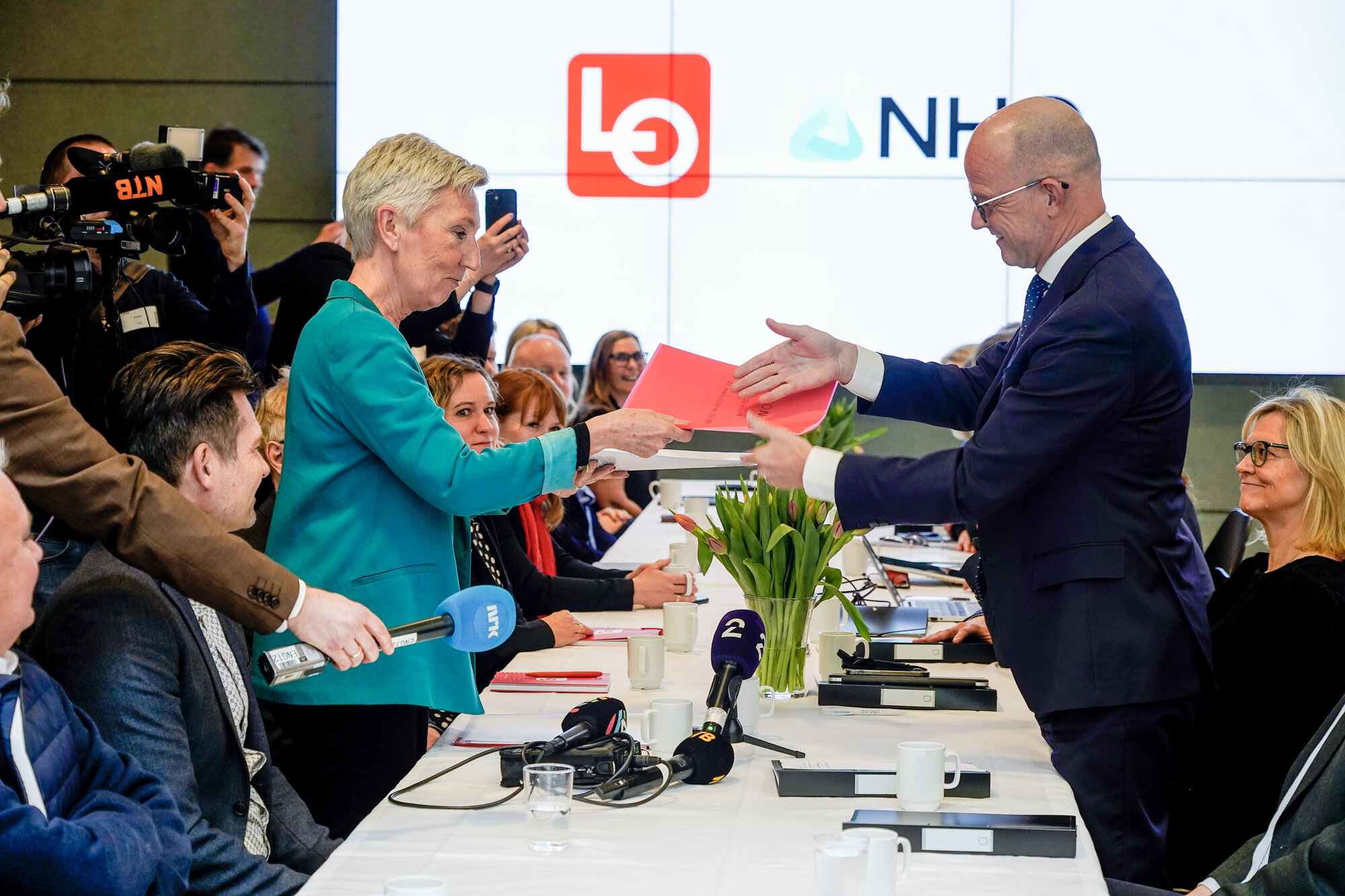 – Våre krav er økt kjøpekraft, samtidig som vi legger vekt på lavtlønnede og likelønn, sa LO-leder Peggy Hessen Følsvik under overleveringen.