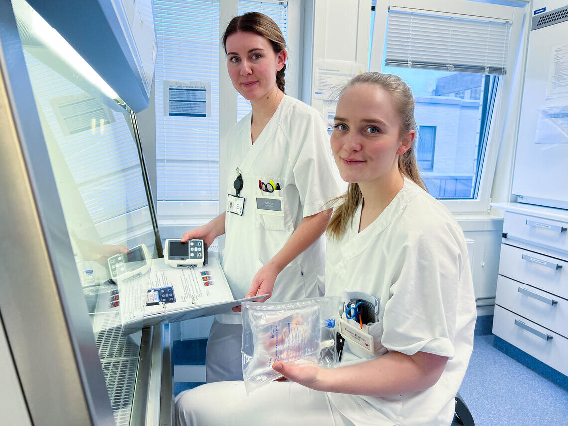 De batteridrevne infusjonspumpene skal blandes og stilles inn én til to ganger i døgnet, i motsetning til de tradisjonelle posene, som blandes og henges opp fire til seks ganger i døgnet. Deretter er det kun generelle observasjoner i forbindelse med behandling og sjekk av innstikkssted som må gjøres. Pumpen ordner det meste selv, skriver Nordlandssykehuset.