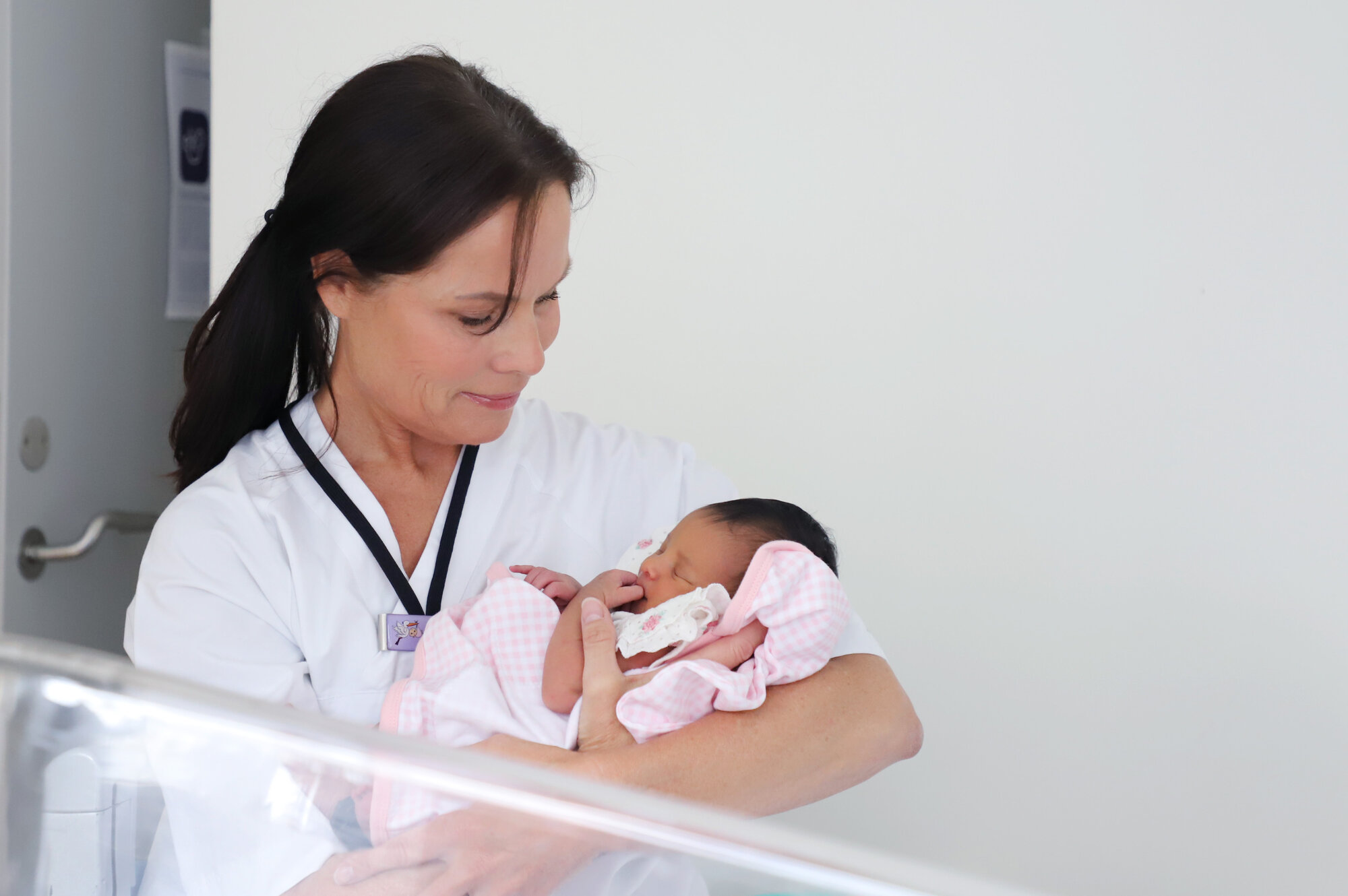 Bildet viser Kariann Turøy Bakstad med en nyfødt baby på armen