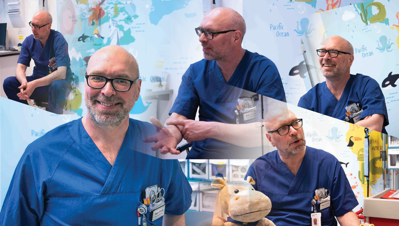 Bilde viser en montasje av Magne Roar Kvavik på barneposten ved Nordlandsykehuset.