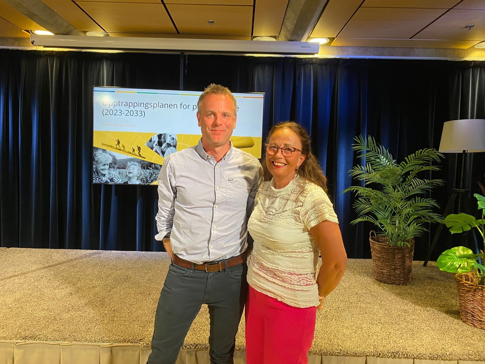 Leder av Landsgruppen av helsesykepleiere, Ann Karin Swang, og leder for NSFs faggruppe innen psykisk helse og rus, Espen Gade Rolland, var i Stavanger.