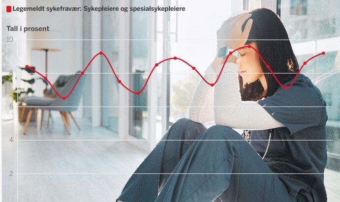 Det legemeldte sykefraværet for sykepleiere og spesialsykepleier går noe ned i forhold til 2022 og er på samme nivå som i første del av 2020.
