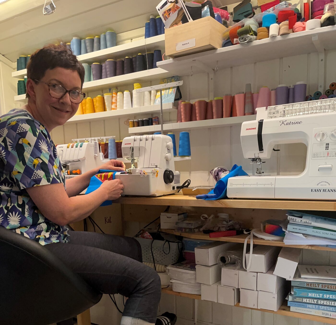 – Men, den gamle symaskinen måtte byttes ut, og da kjøpte jeg min første Overlock. Da ble det skikkelig gøy, og jeg begynte å sy meg kjoler. Ja, jeg har flere titalls per i dag, sier hun og ler litt.