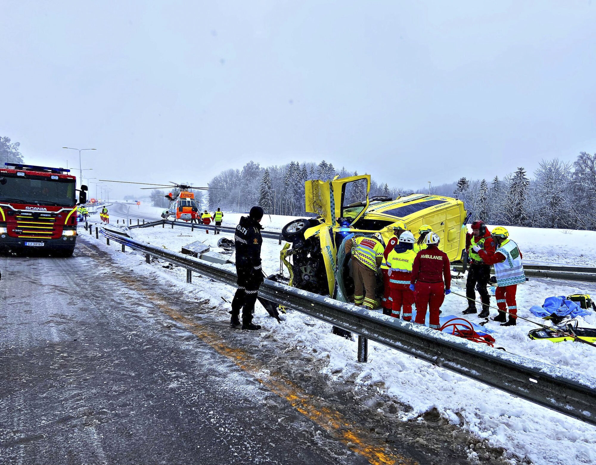 Det var tre ansatte i ambulansen. En ble alvorlig skadet. Det var en pasient om bord.
