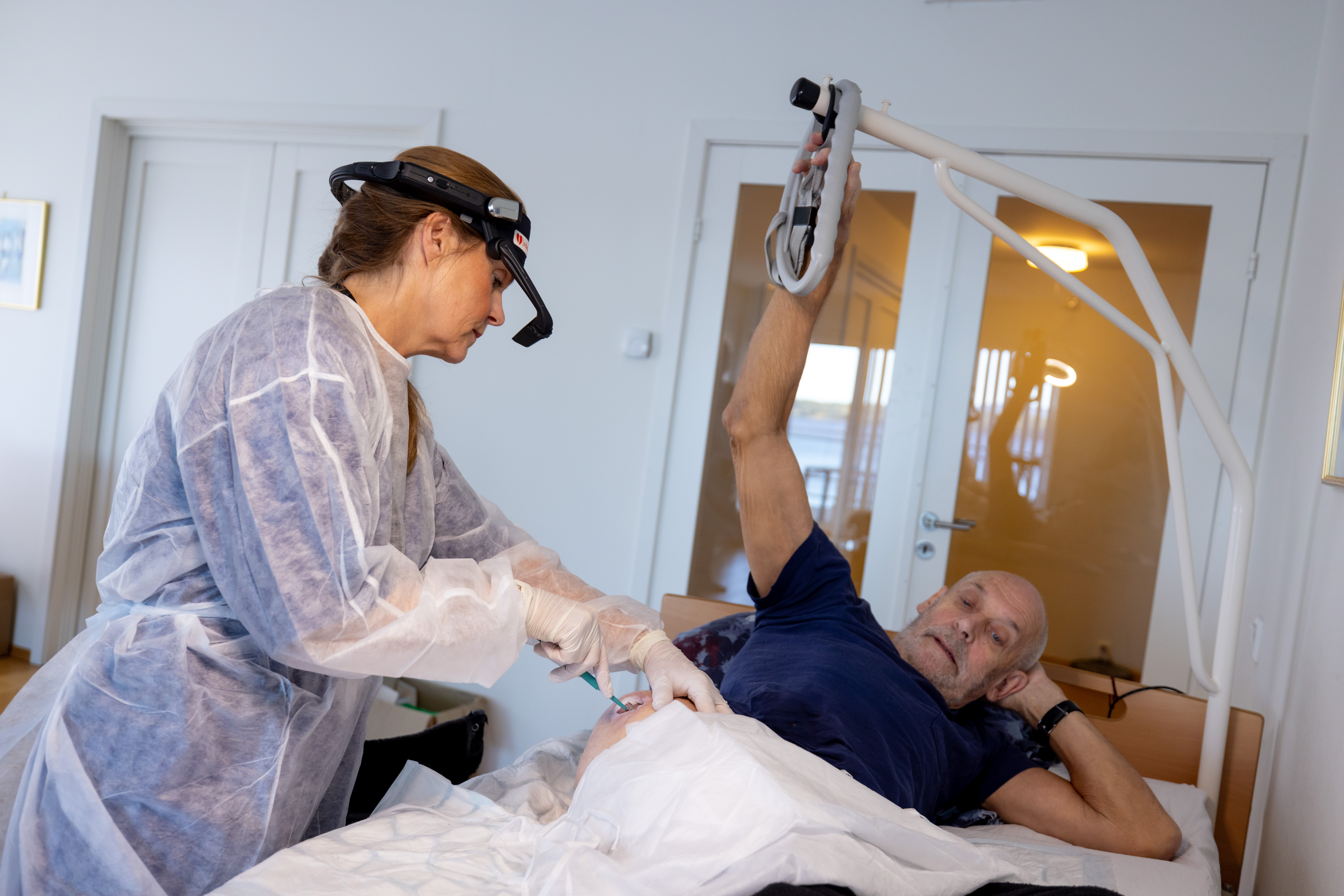Til nå har hjemmesykepleieren benyttet hodekameraet til fem av sine pasienter. Det kan fort bli flere.
