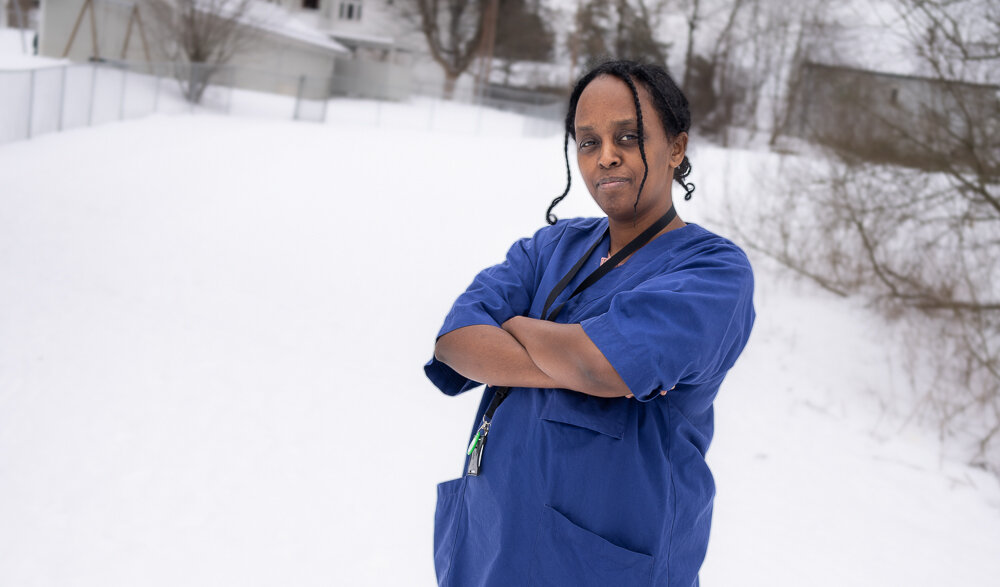 Amina Ibrahim jobber ved hjemmetjenesten på Hovseter i bydel Vestre Aker i Oslo. Hun og kollegene fryser på de kaldeste dagene på jobb så hun ropte ut om problemet i Sykepleien i mars i år.