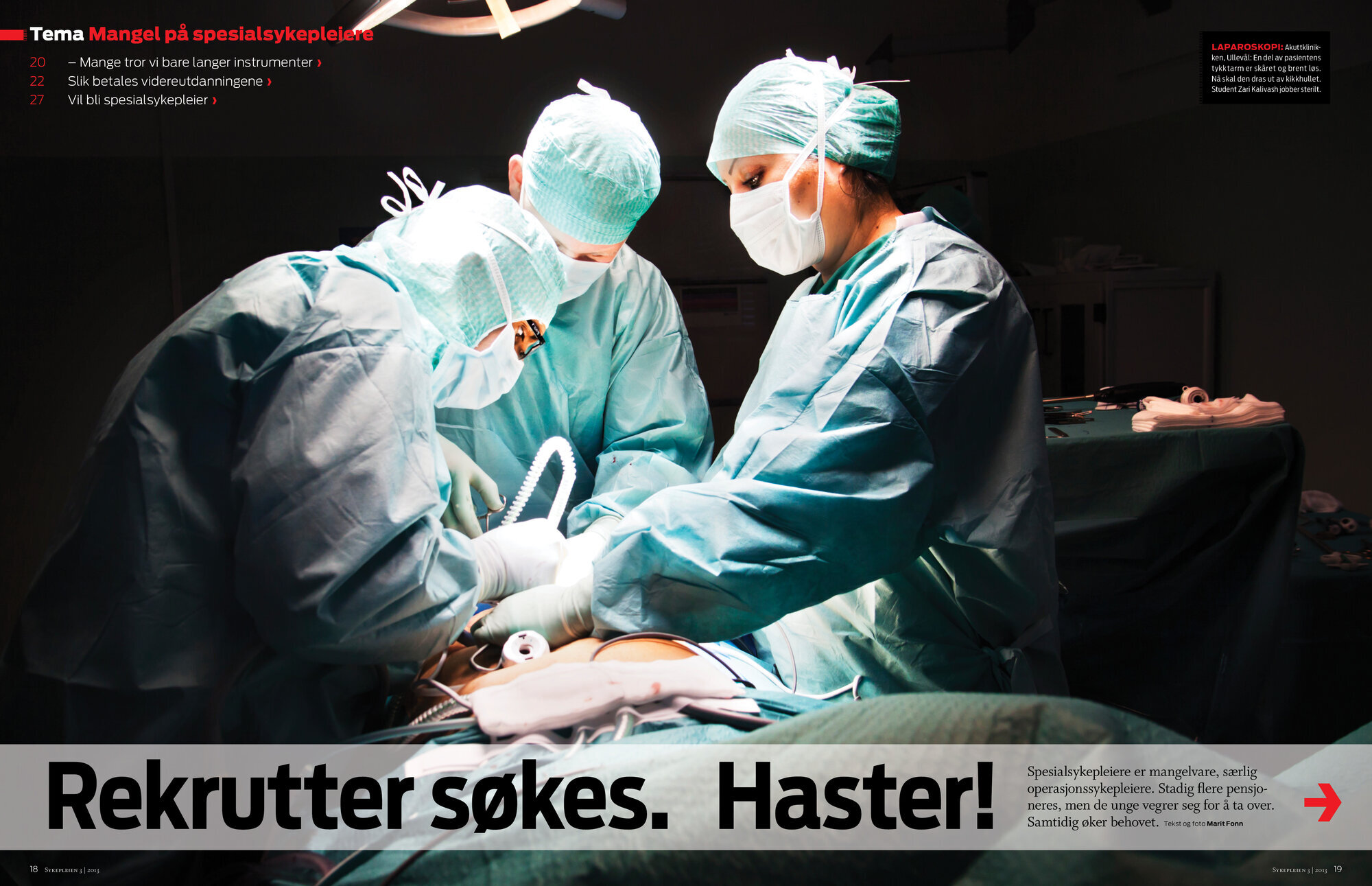 – Akkurat nå er det ledige stillinger for operasjonssykepleiere, men i midten av desember vil vi være fullbemannet, på grunn av økt antall utdanningsstillinger, forteller hun.