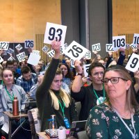 106 delegater hadde sans for Tiril Bringsrud Svensens argumenter, mens 83 ville opprettholde sak 4.