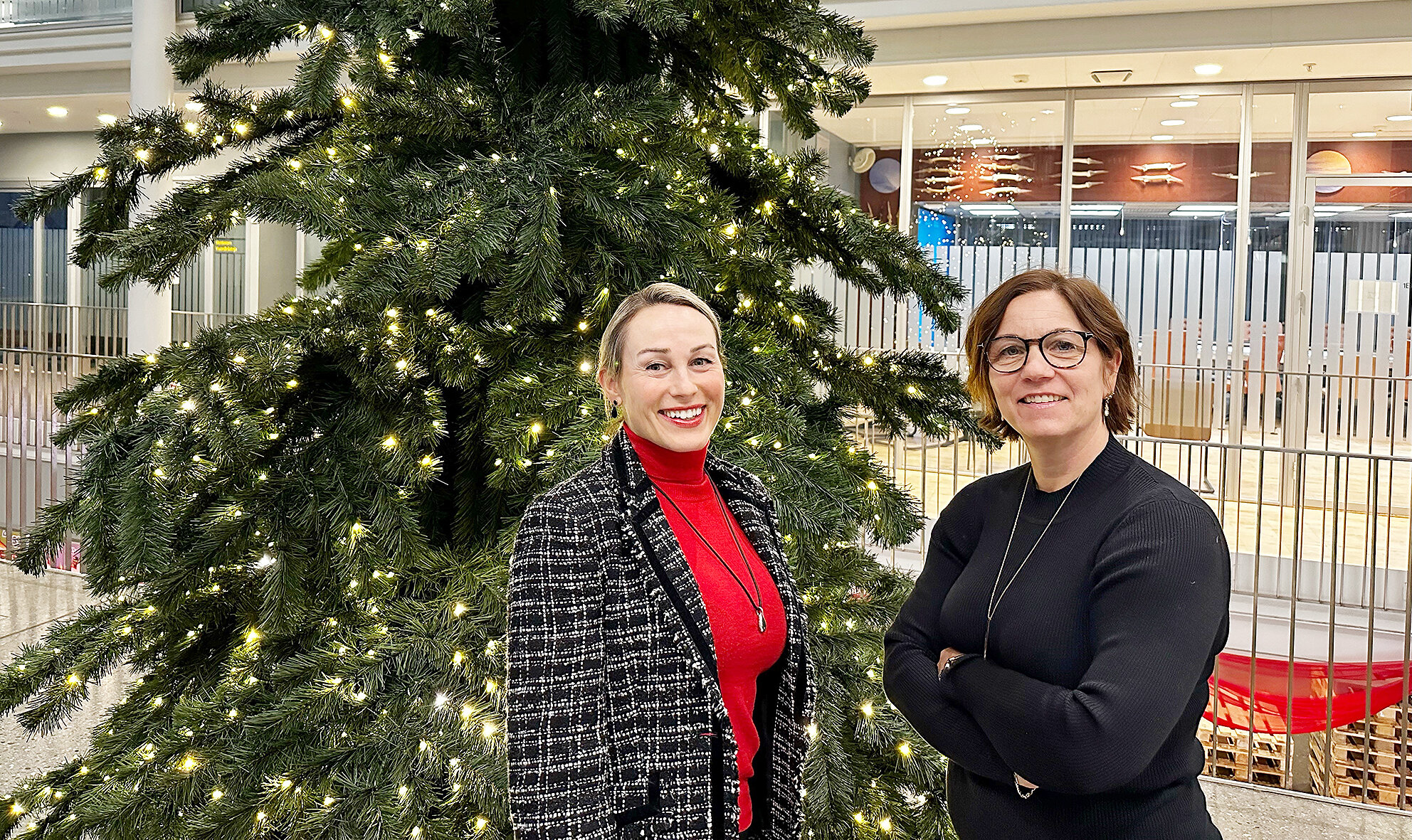 Anette Karlsen Eines og Guro Falk, begge hovedtillitsvalgt i NSF Tromsø kommune, er veldig glade: