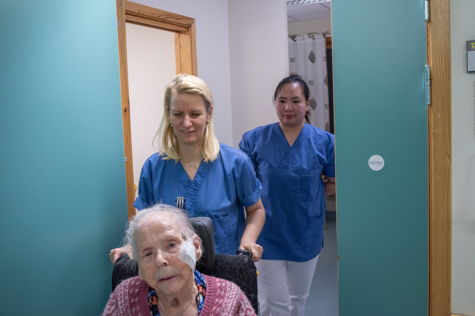 Ukrainske Iryna Maksakova er en av dem. I sommer ble hun utplassert for språktrening på sykehjemmet. To måneder senere var hun i jobb som assistent. Med seg inn i jobben har hun 23 års erfaring som sykepleier fra Ukraina. Da krigen brøt ut, jobbet hun som oversykepleier i endoskopi på onkologisk avdeling på et militærsykehus i byen Kyiv.
