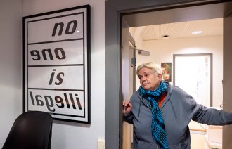 Jenvald Kristiansen tar et godt tak i hånda til Jenin Sagahun. Han har ikke lyst å bli med på stua, men han vil gjerne at hun setter seg ned og tar en prat. Om de utenlandske pleierne har han følgende å si: De må slutte å sette rullestolen hans på feil side. Det er mange han ikke forstår og som ikke forstår ham. Og det er ikke bestandig like greit.
