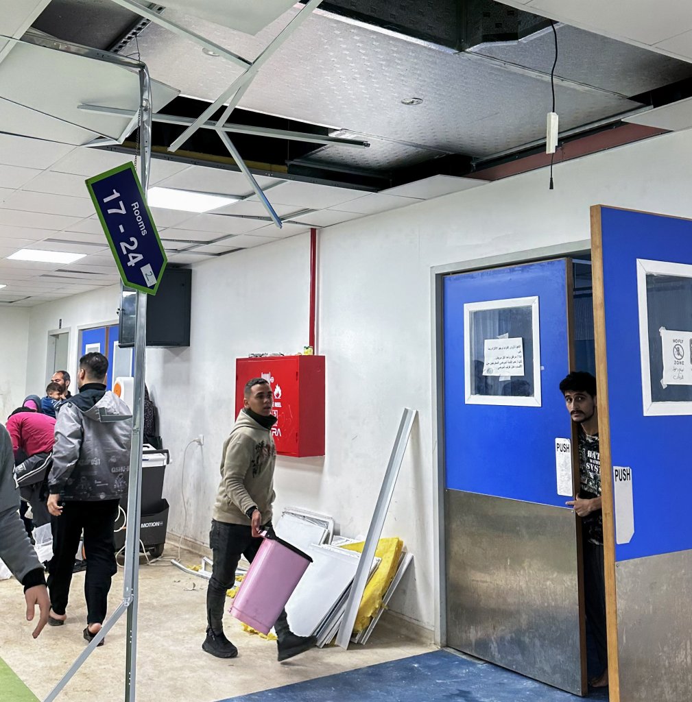 Tilbake til sykehusområdet noen kilometer inn på Gazastripen: I håp om å unngå bombene har 25 000 palestinere slått seg ned der.