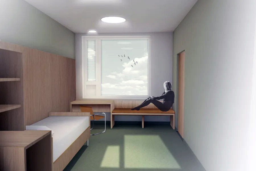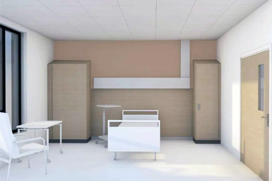 Alle rommene vil ha eget bad, en lenestol med leselampe for pasientene og store vinduer, som vil gi god utsikt. Det blir besøksstoler og tv på alle rommene.