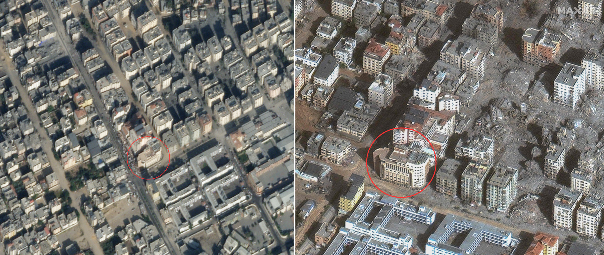 En video som IDF publiserte 7. november er verifisert av CNN og viser et angrep på en bygning som skal være rett over 100 meter unna sykehuset. Det israelske militæret påsto at et av målende denne dagen var et Hamas-våpenlager i et sivilt område.
