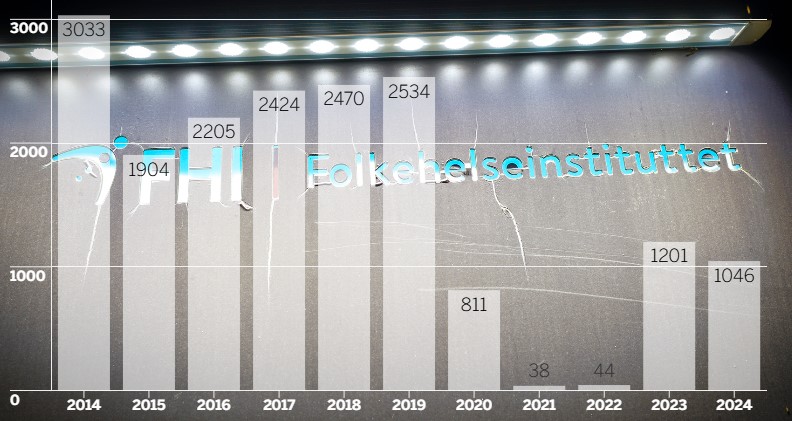 Helt siden sommeren i fjor har bakterien spredt seg i et hurtig tempo, skriver TV 2. Tallene for 2024 i grafen over er hittil i år.