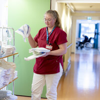 – Jeg kommer fra jobben på nevrologisk sengepost. Der begynte jeg rett etter jeg var ferdig på studiet i 2019. Jeg hadde siste praksis på Rikshospitalet, fikk sommerjobb og deretter fast jobb, forteller hun.