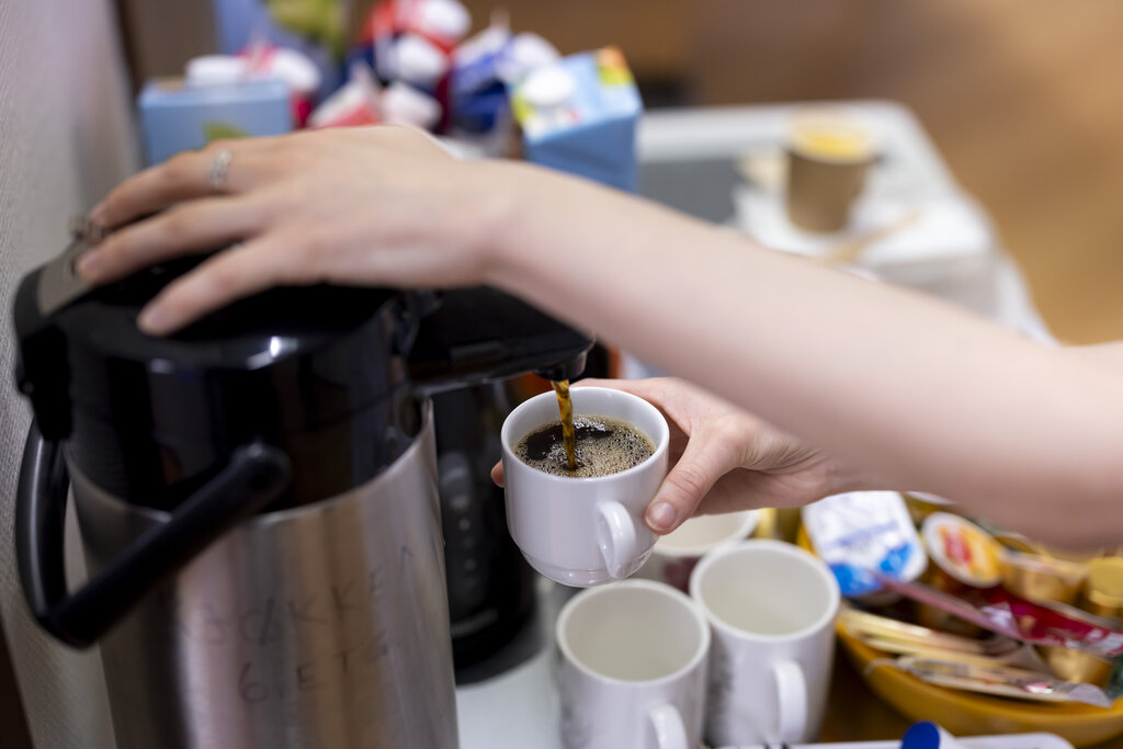 - holde orden og sette frem te, sukker, teskjeer og liknende ved kaffemaskin