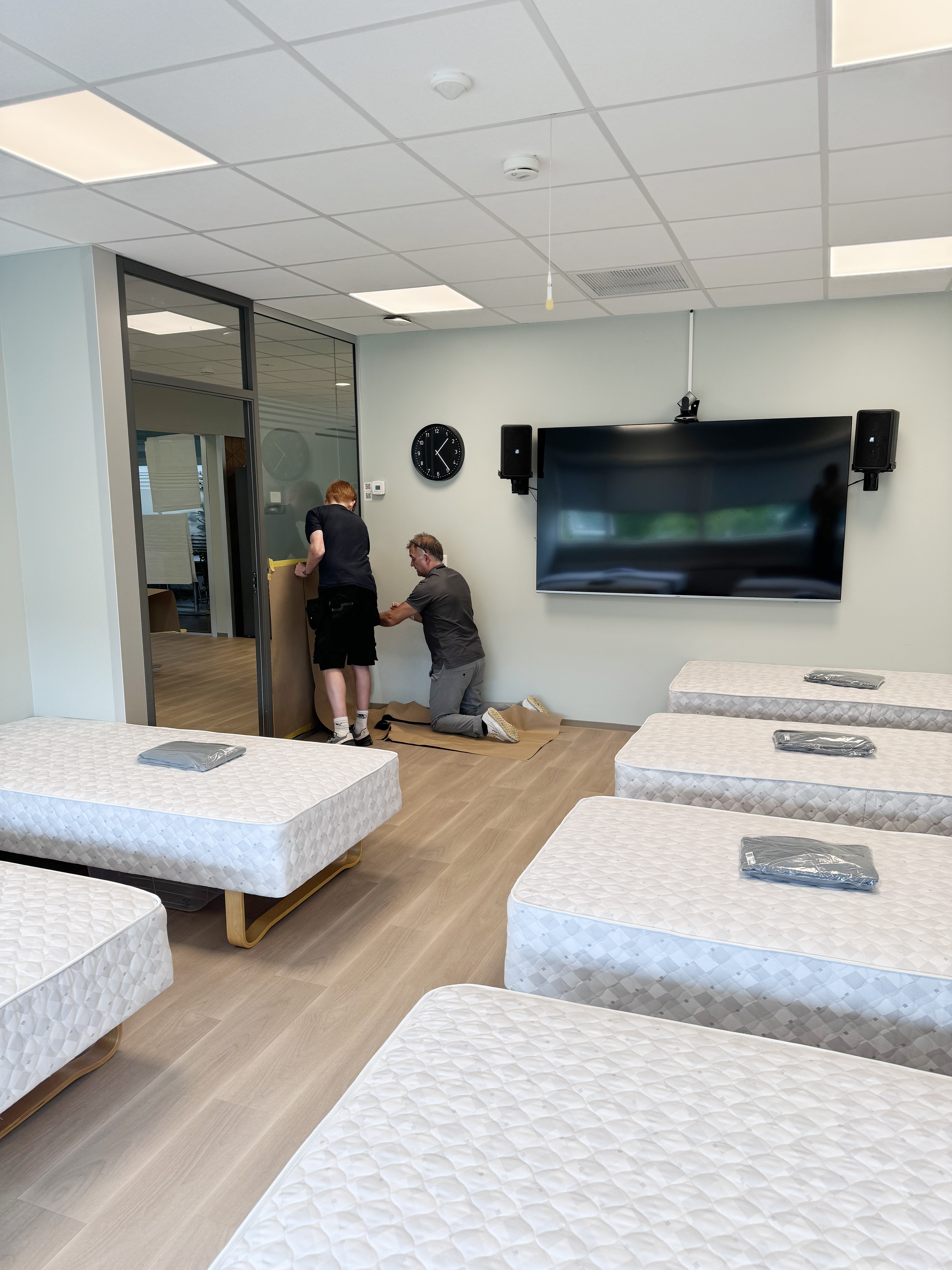 I administrasjonsbygget på Fantoft gjør de nå klart rundt 90 sengeplasser i flere større fellesrom.