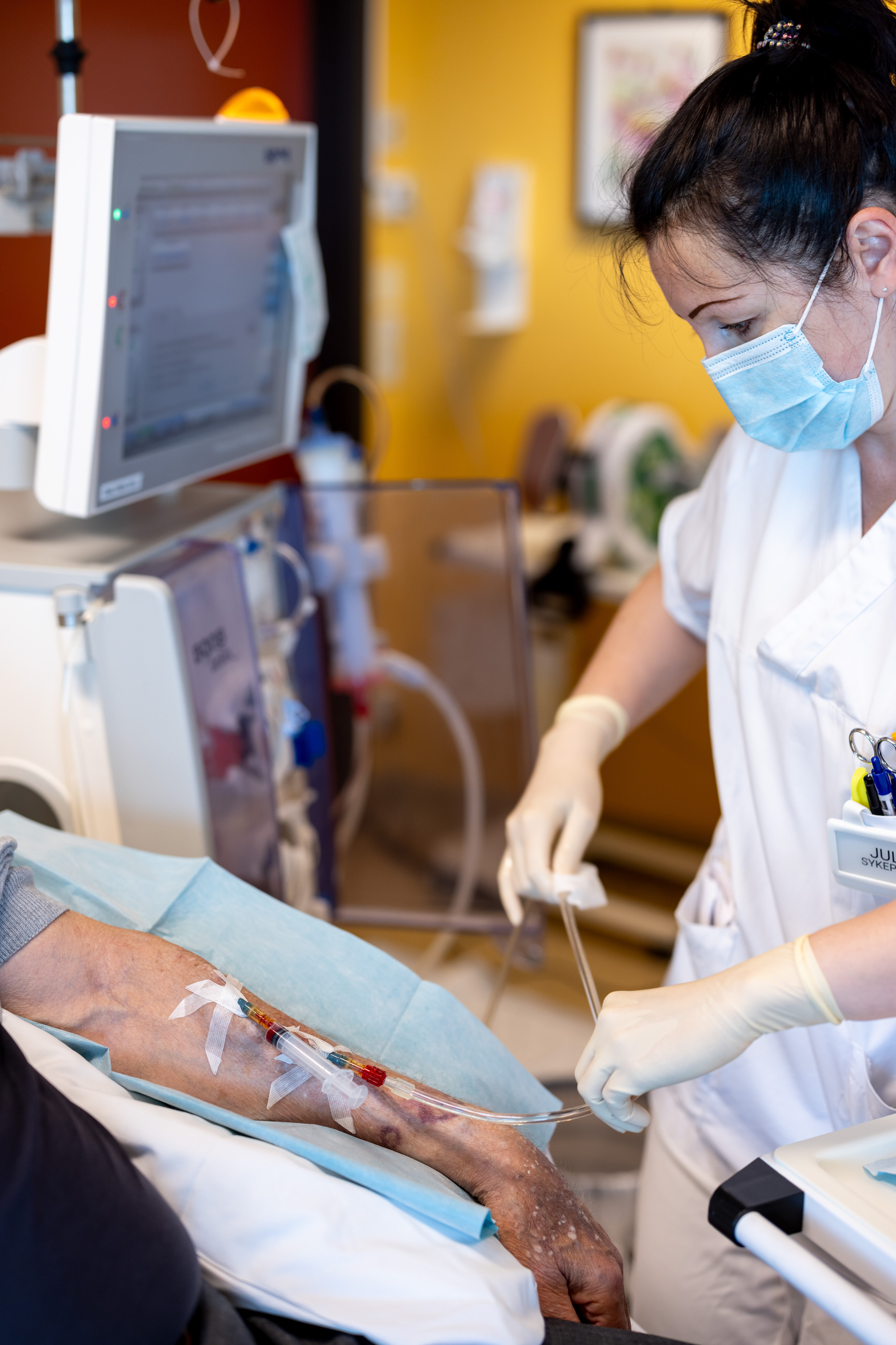 – Våre pasienter er ikke så aktive, og det er tøft for hjerte- og karsystemet å gjennomgå dialyse. To til fire ganger i uken er pasientene her og får renset blodet fordi nyrene har sviktet, forteller sykepleieren.