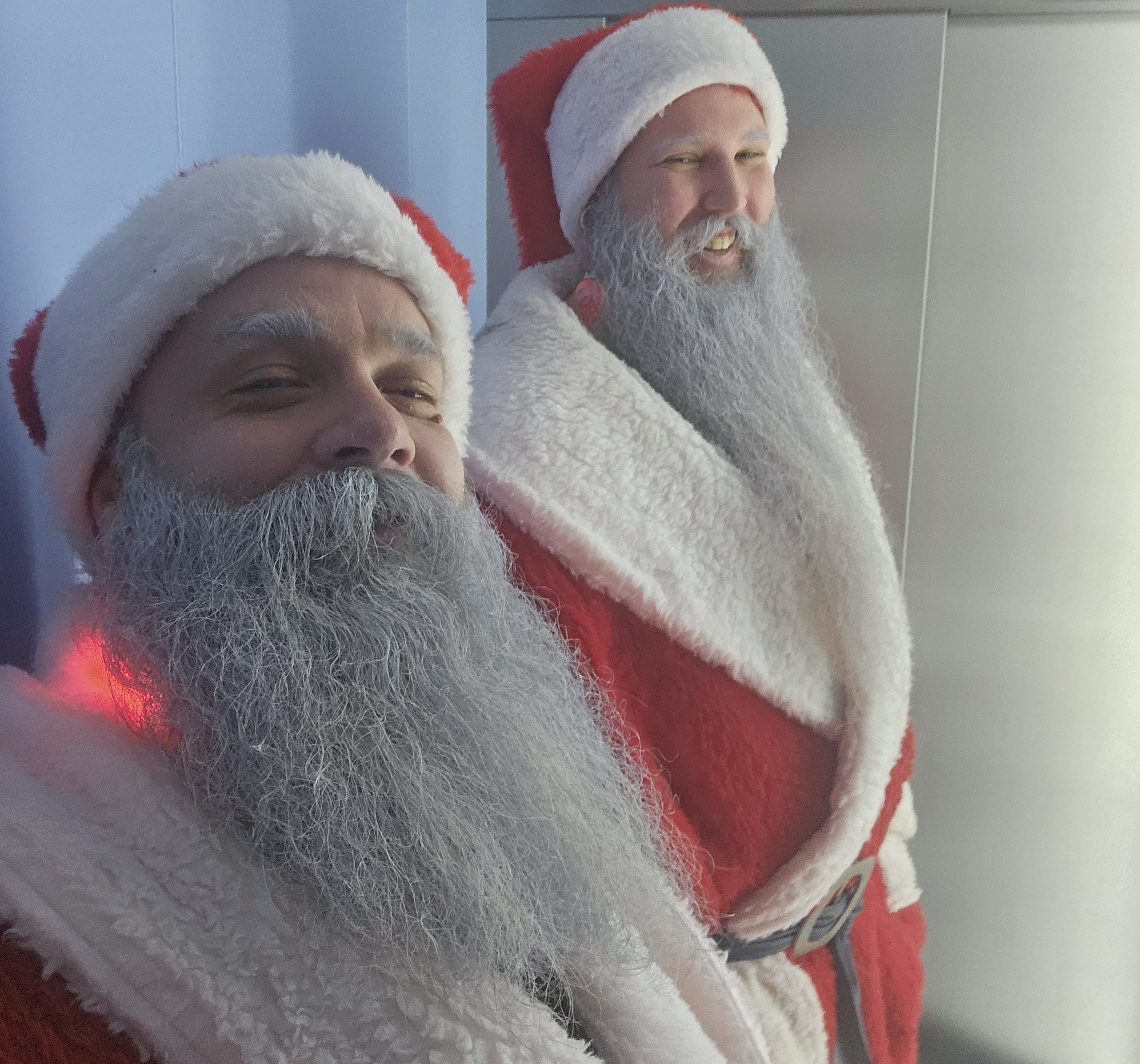 – Vi oppfordrer barna til å dra oss i skjegget når vi er på besøk til foreldrenes store fortvilelse. De har jo tenkt å ha nisse med løsskjegg på julaften, så mange tenker at «der røyk den planen».