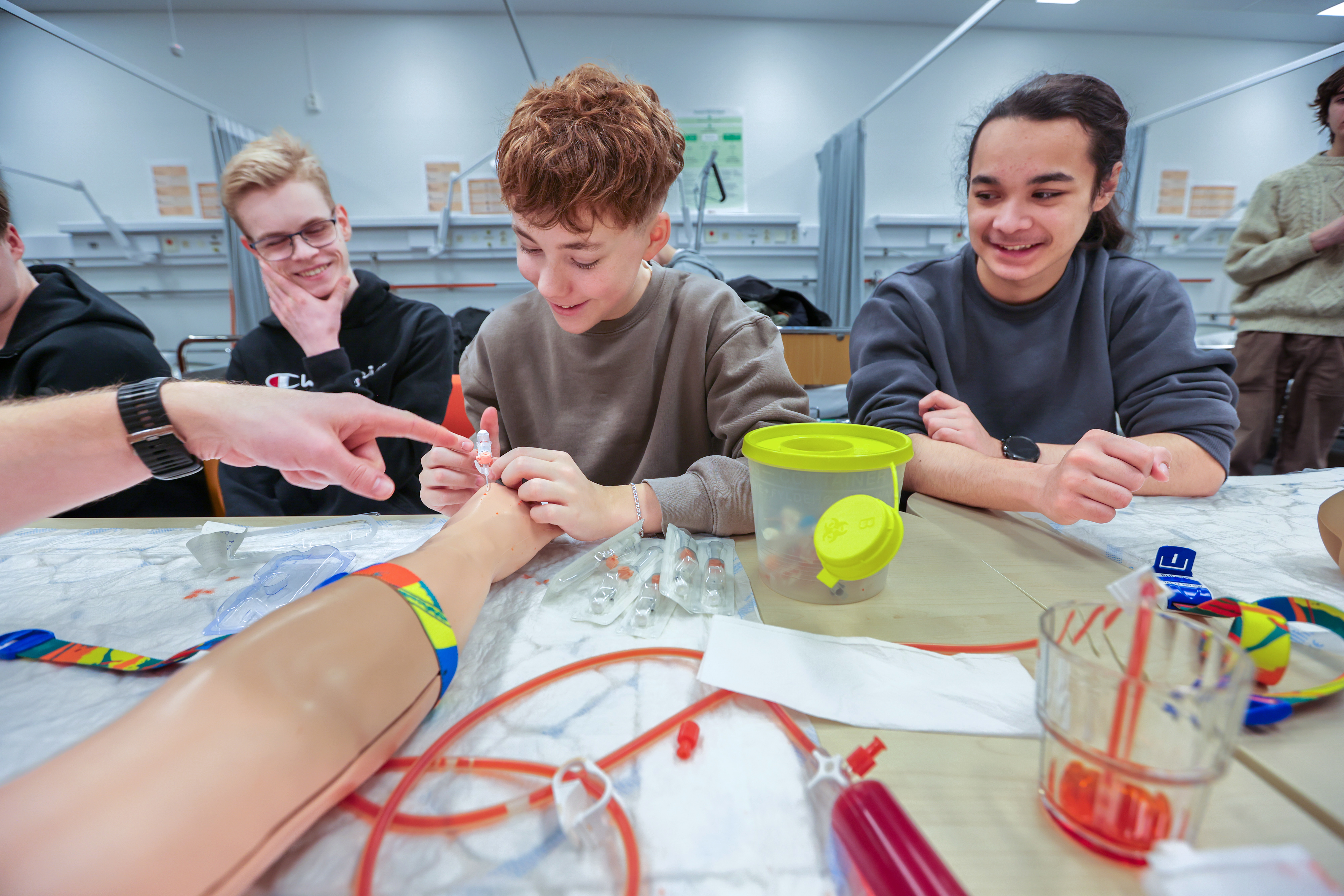 Skoleelev prøver seg på innsetting av PVK i Tromsø