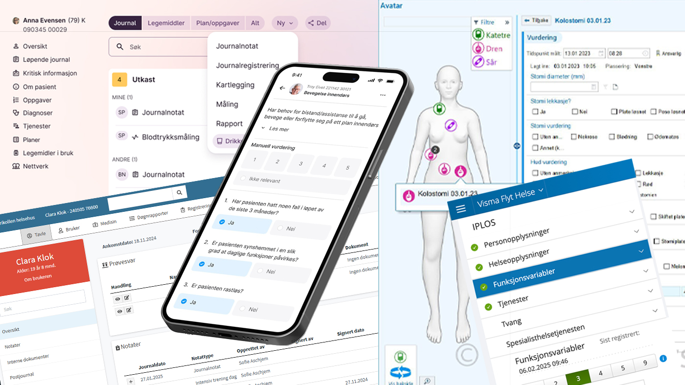 - Visma Flyt Helse: Vi har utviklet EPJ-løsninger og andre fagsystemer tett på kommunene i over 30 år og fått en unik forståelse for hvordan helsepersonell jobber i det daglige og hvordan behovene deres kan løses på mer effektive måter. Flyt Helse er dessuten bygd på en felles arkitektur med andre kommunale fagsystemer. Det tillater oss å effektivt utvikle løsninger som er relevante parallelt, forsterke sikkerhetssystemene og tilrettelegge for bedre tverrfaglig samhandling.