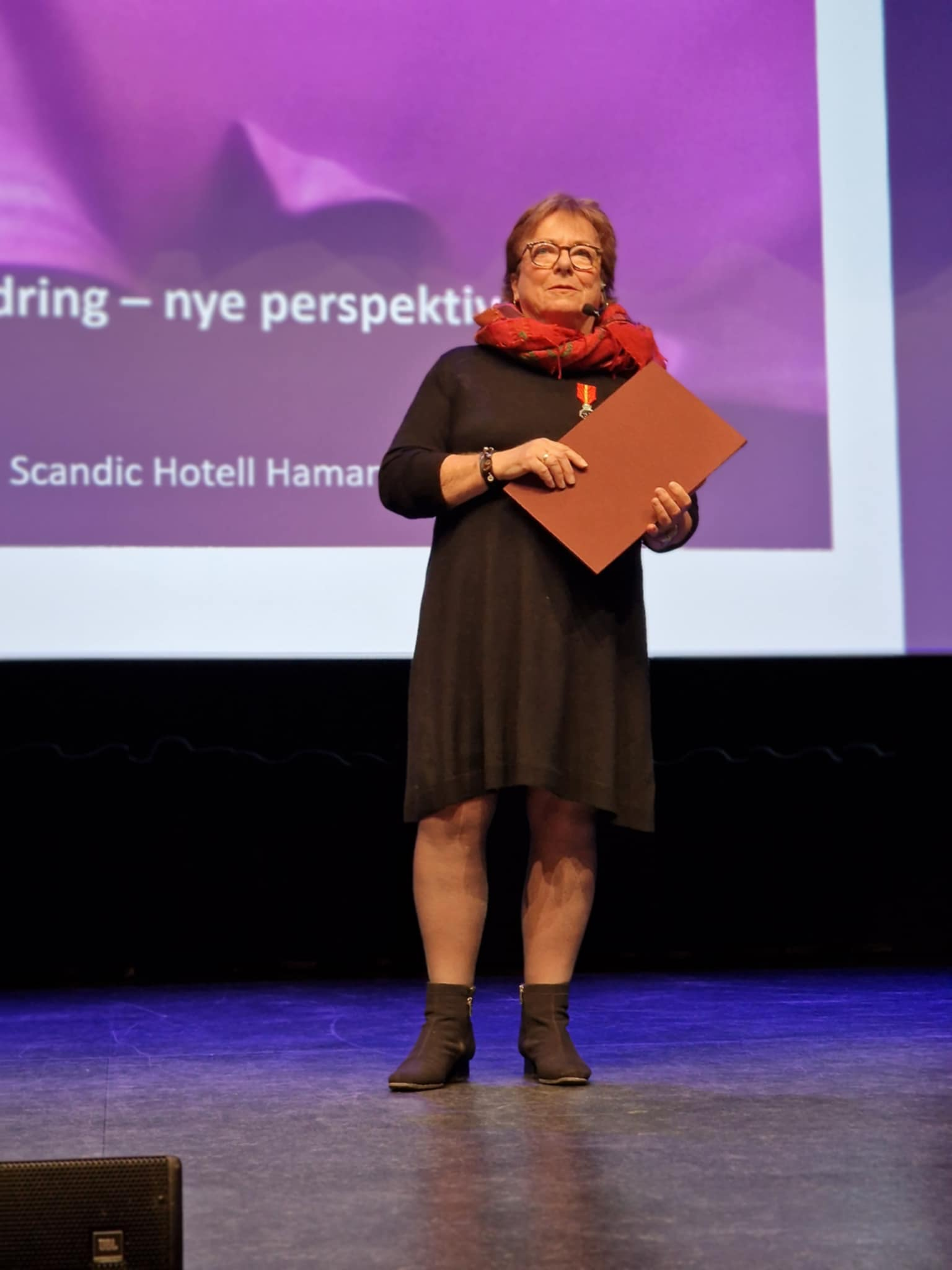 Reidun Hov (77) mottok utmerkelsen under Innlandets demenskonferanse onsdag.