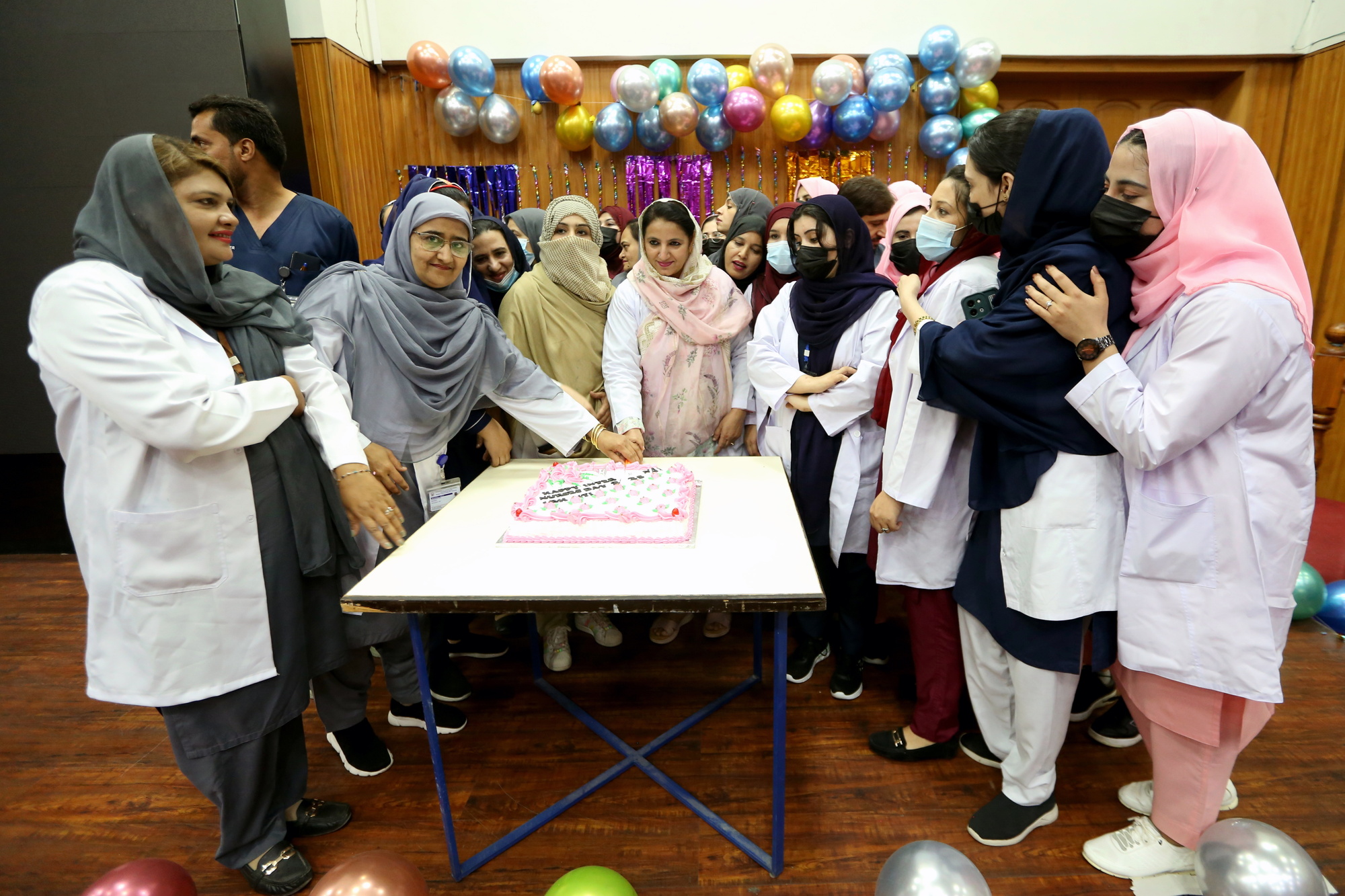 SYKEPLEIERE PÅ KAKEFEST: Sykepleiere ved Lady Reading government hospital i Peshawar, Pakistan, feirer den internasjonale sykepleierdagen 12. mai.