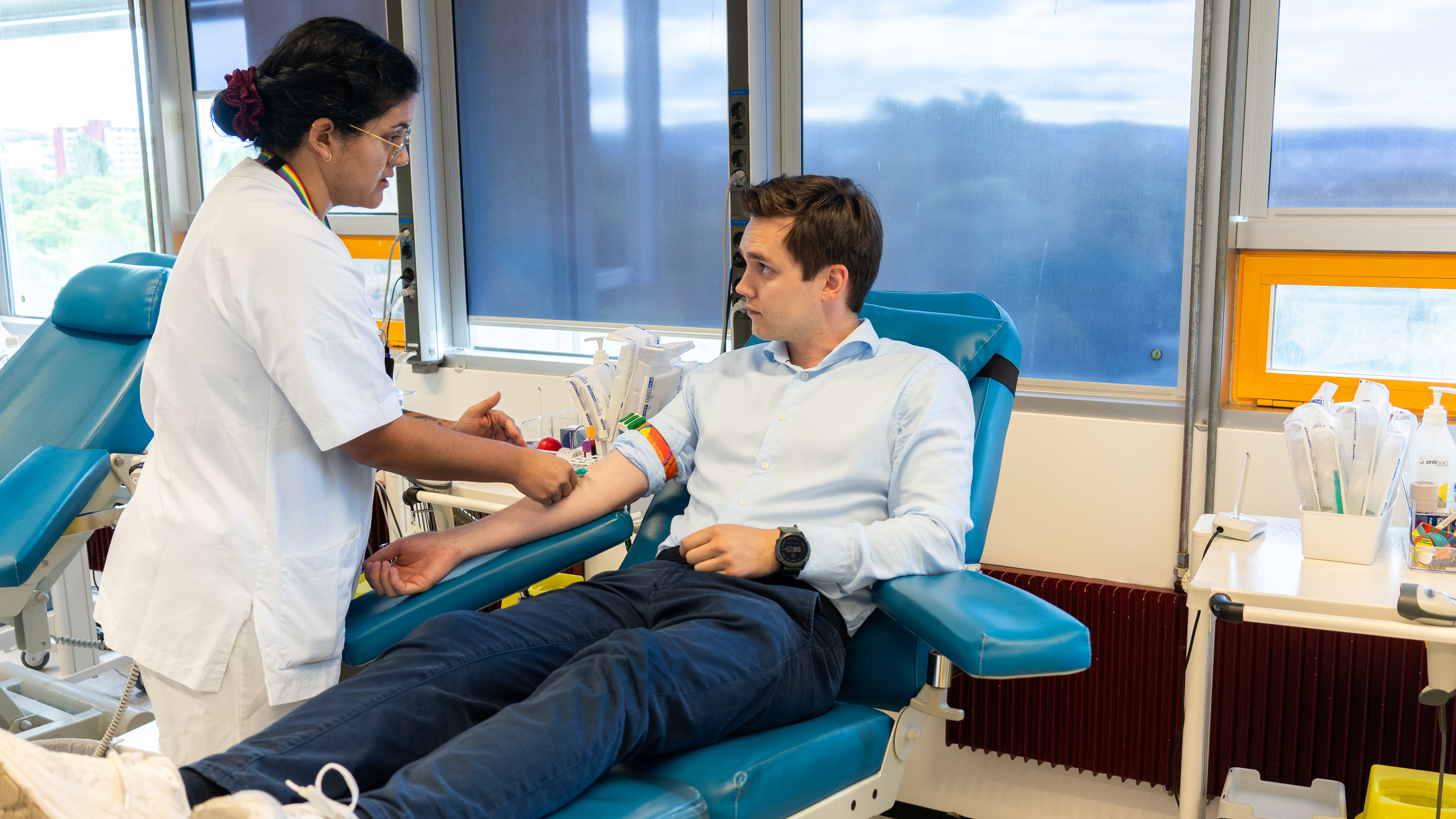 I blodbanken på Ullevål er det blitt Kristian Eivindstad sin tur. Han er 25 år og skal registrere seg som blodgiver.