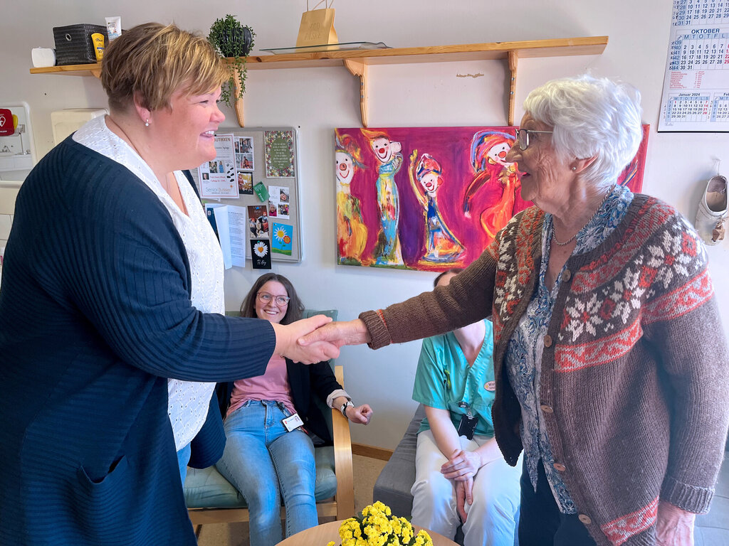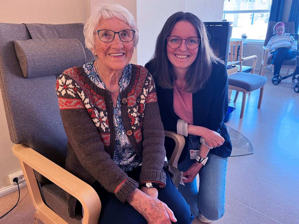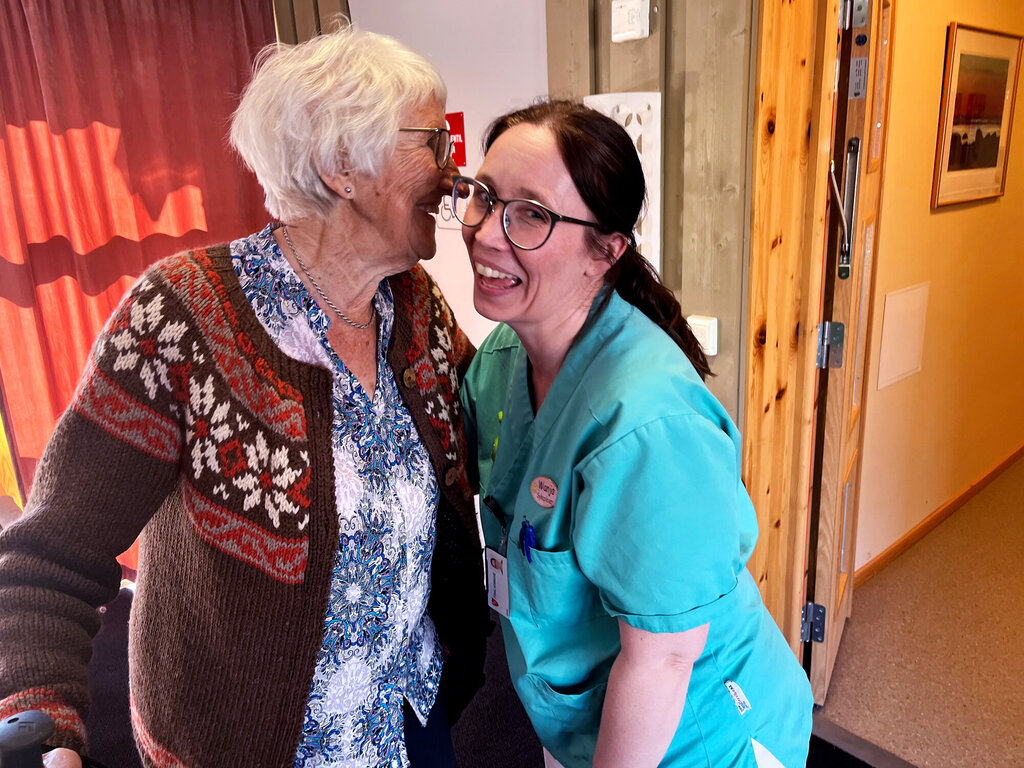 Inne på sykehjemmet møter vi en gammel kollega, Gudny Hilmo.