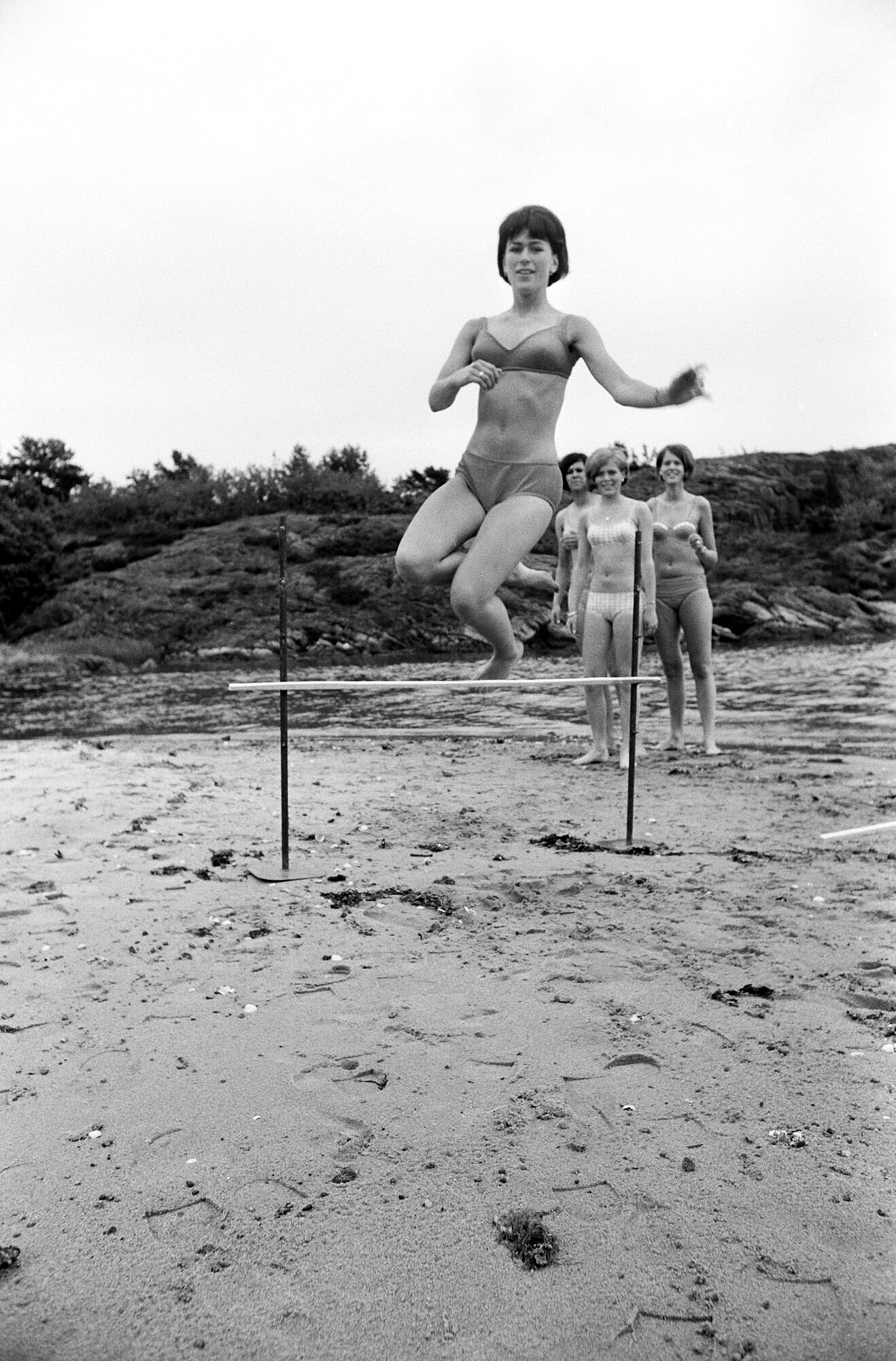 Sommeren 1968. Aktuells Trim-team spretter fra campingplass til campingplass og deler ut kaloririk konfekt til den flinkeste trimme-piken. Ukens Trim-pike i front, Eva Gundersen, foretrekker horisonten i vann fremfor å hoppe over en ufyselig trestokk. Men moro var det likevel, forteller hun.