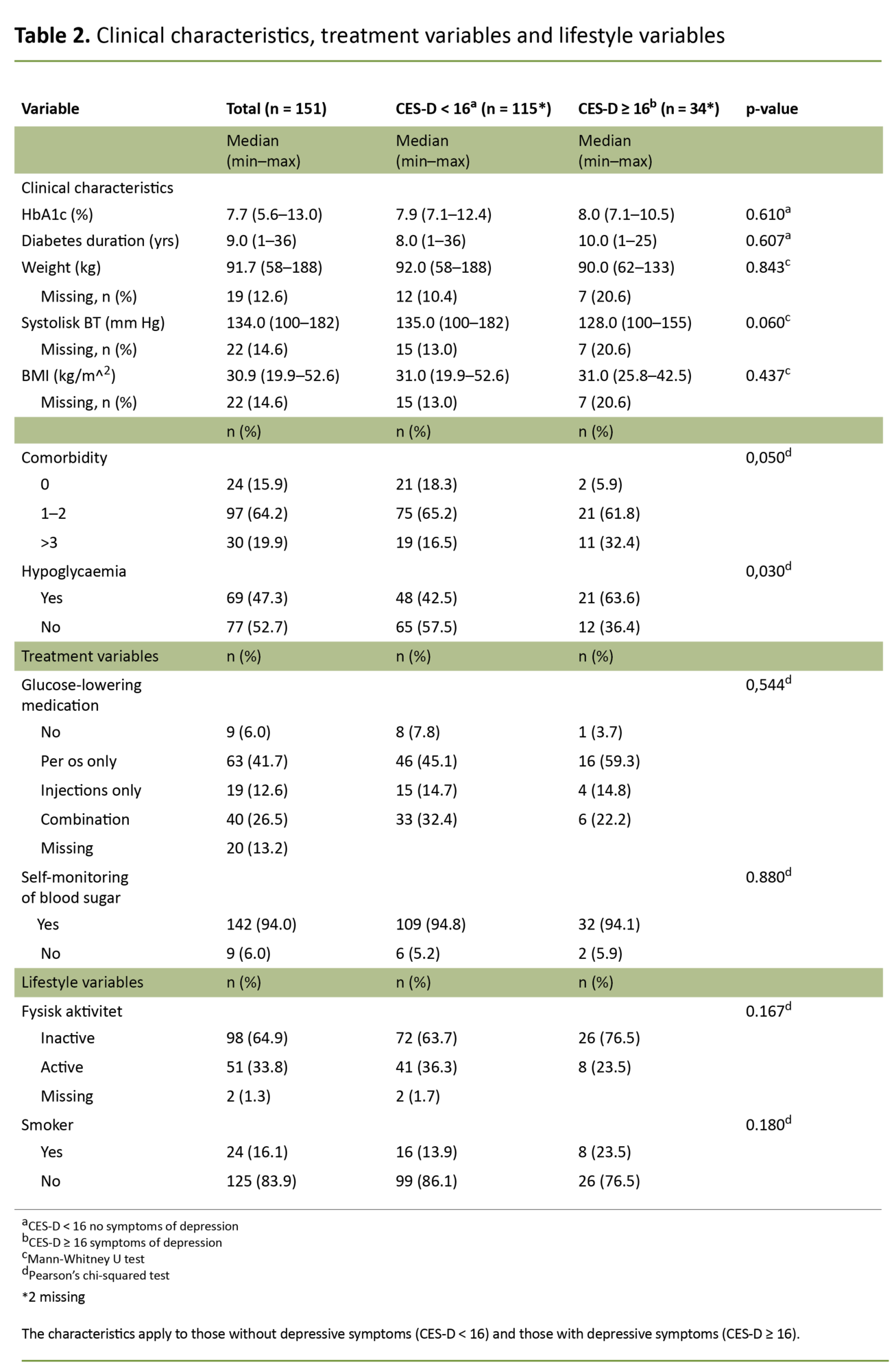 Background: Type 2 diabetes mellitus is the most common type of diabetes in the world and in Norway. People with type 2 diabetes have a significantly increased risk of developing depressive symptoms. Depression in people with diabetes is associated with adverse effects, such as increased risk of complications, poorer quality of life and, in the worst case, premature death.