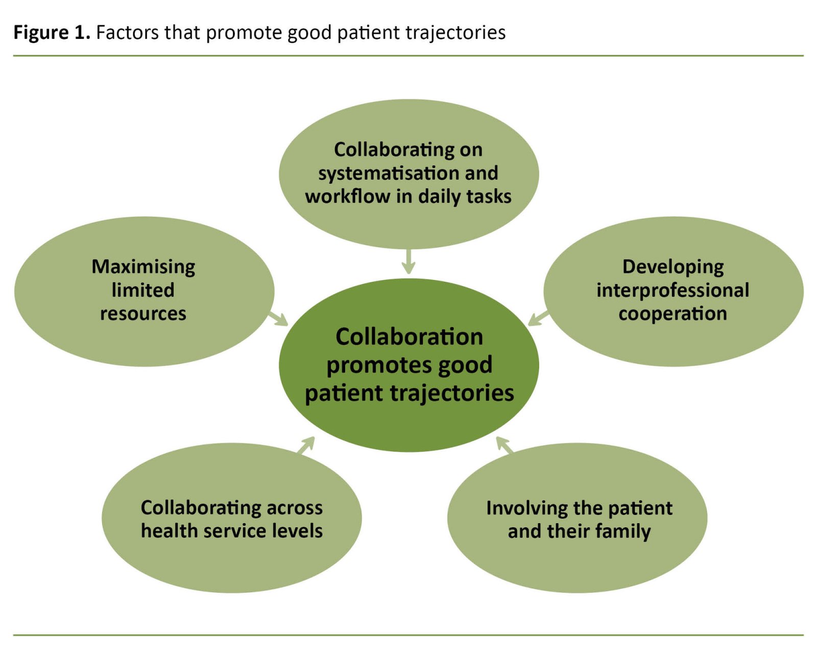 Results: Collaborating on systematisation and workflow in daily tasks, developing interprofessional cooperation, involving the patient and their family, collaborating across health service levels and maximising limited resources were factors that promoted a good patient trajectory.