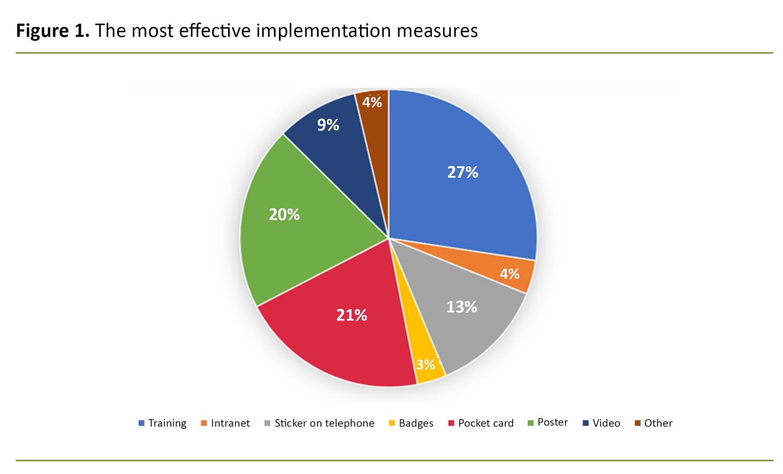 Training sessions, pocket cards and posters were listed as the most effective implementation initiatives (figure 1).