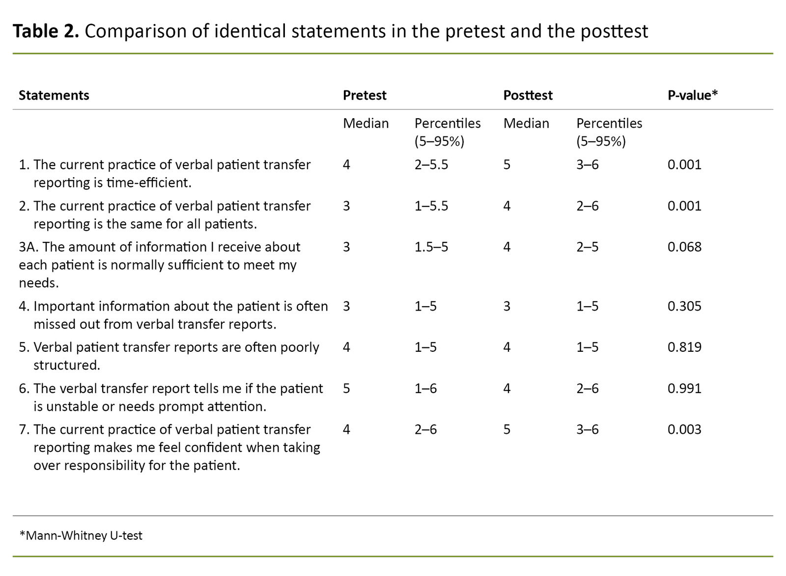 We asked the following open-ended question in both the pretest and the posttest: ‘Based on your experience, are there any other negative or positive aspects of the verbal transfer report that you would like to point out?’