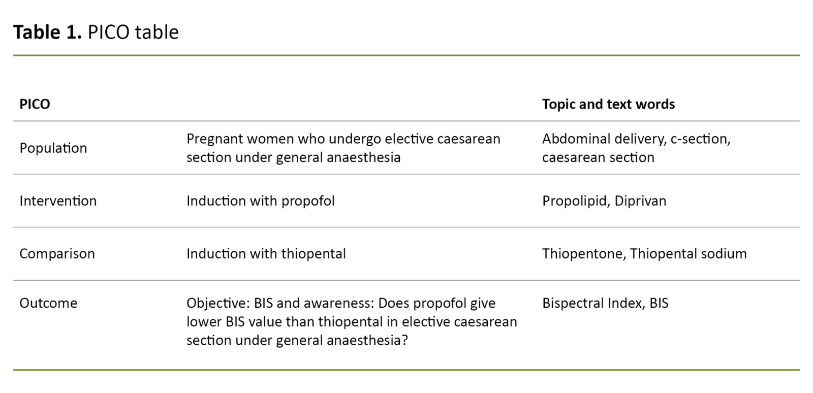 Table 1. PICO table