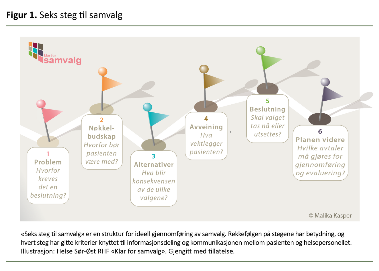Sykepleierens tradisjonelle rolleforståelse er både et godt utgangspunkt for og har stort potensial til å stimulere til samvalg og gi rom for at pasienten kan delta aktivt. Erfaring fra andre land (12) viser at det er svært usannsynlig at samvalg kan innføres uten en nasjonal, systematisk og kunnskapsbasert tilnærming (13).